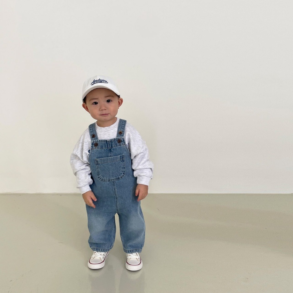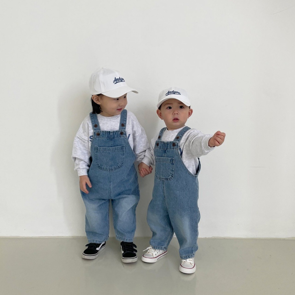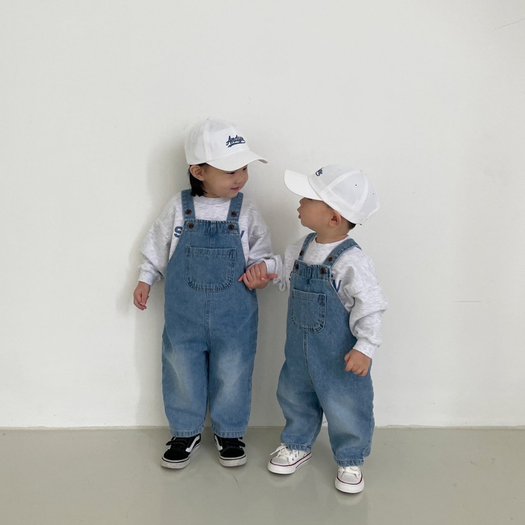 가을 아동복 데님 스트랩 바지에 새로운 한국 스타일 소년과 소녀를위한 중소 어린이 유행 한국 캐주얼 바지 점프 슈트스토어 가기