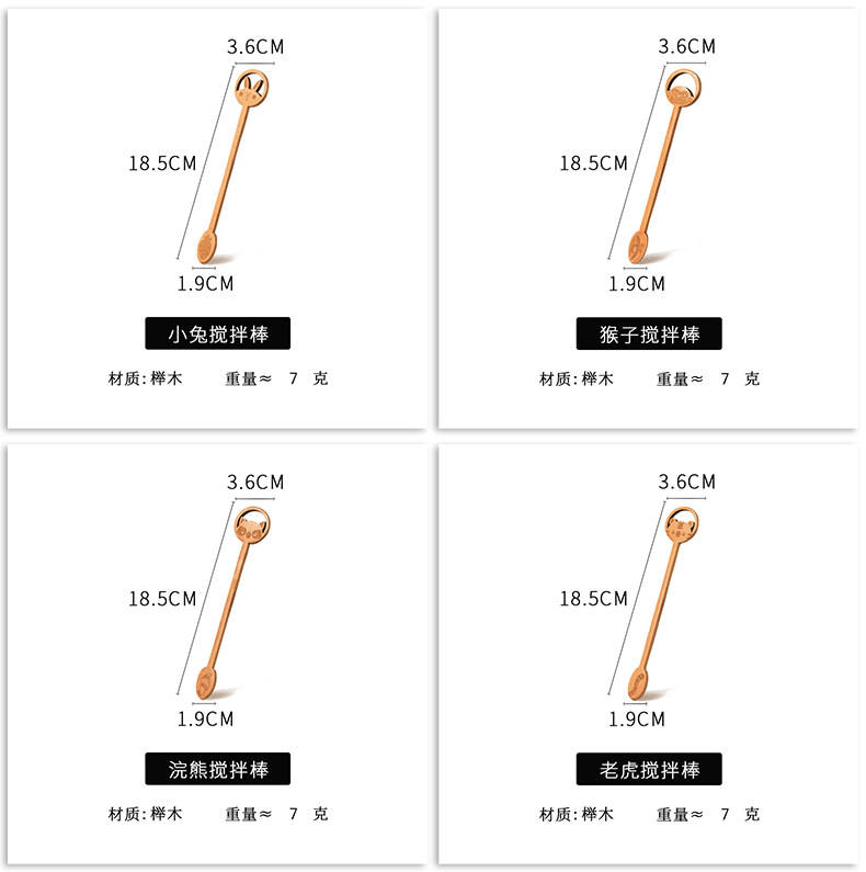 긴 손잡이 귀여운 만화 동물 믹싱 스푼 단단한 나무 커피 스푼 차 믹싱 스틱 나무 손잡이 식기 꿀 믹싱 스푼스토어 가기