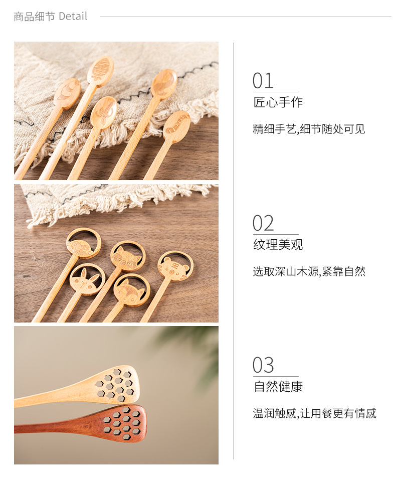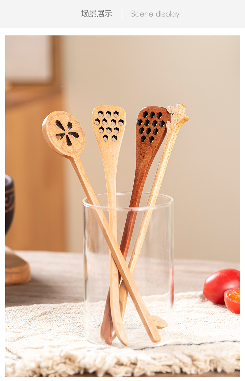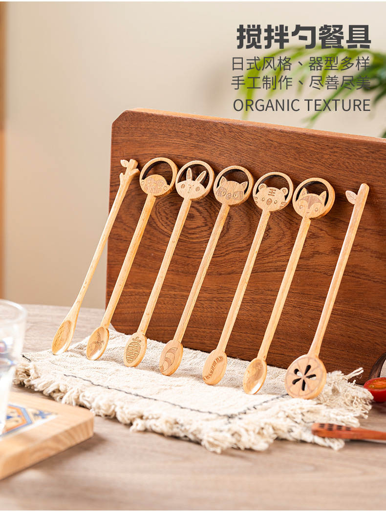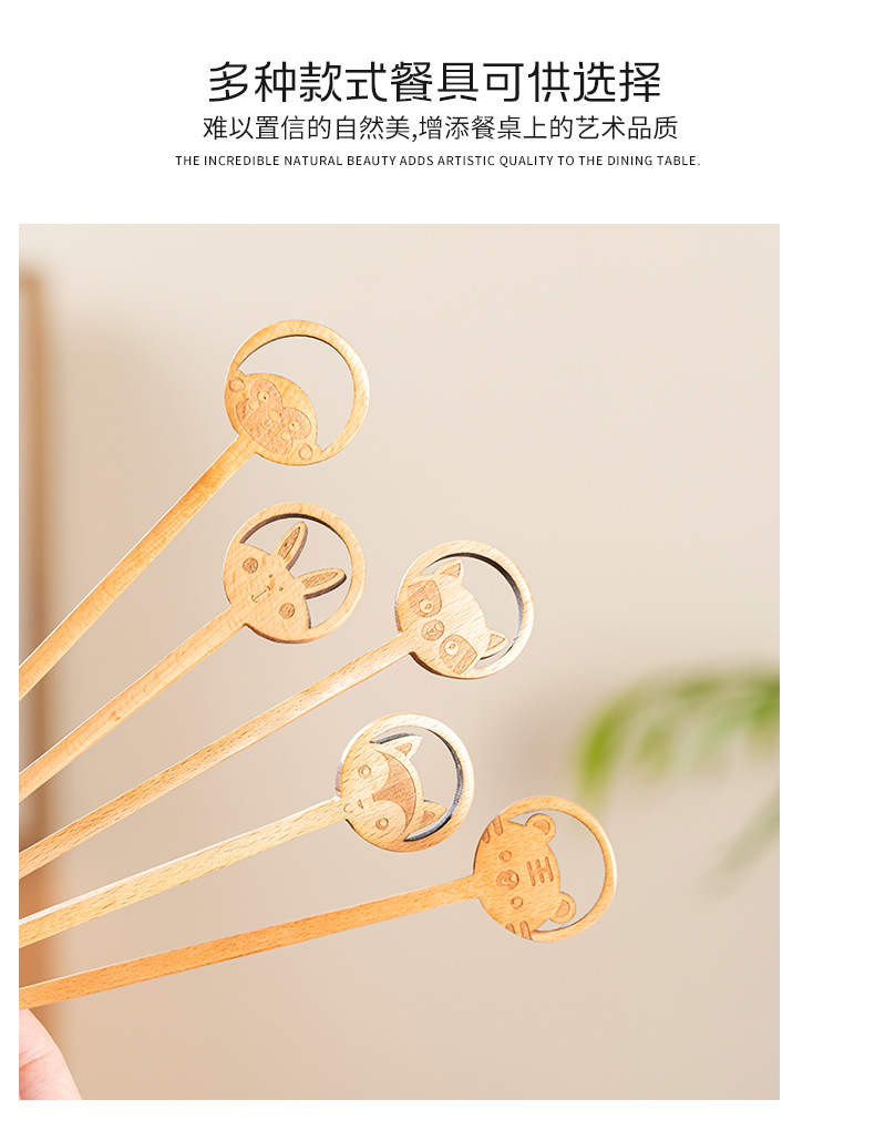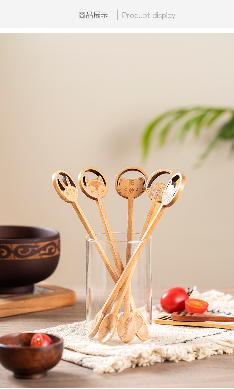 긴 손잡이 귀여운 만화 동물 믹싱 스푼 단단한 나무 커피 스푼 차 믹싱 스틱 나무 손잡이 식기 꿀 믹싱 스푼