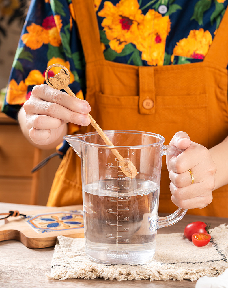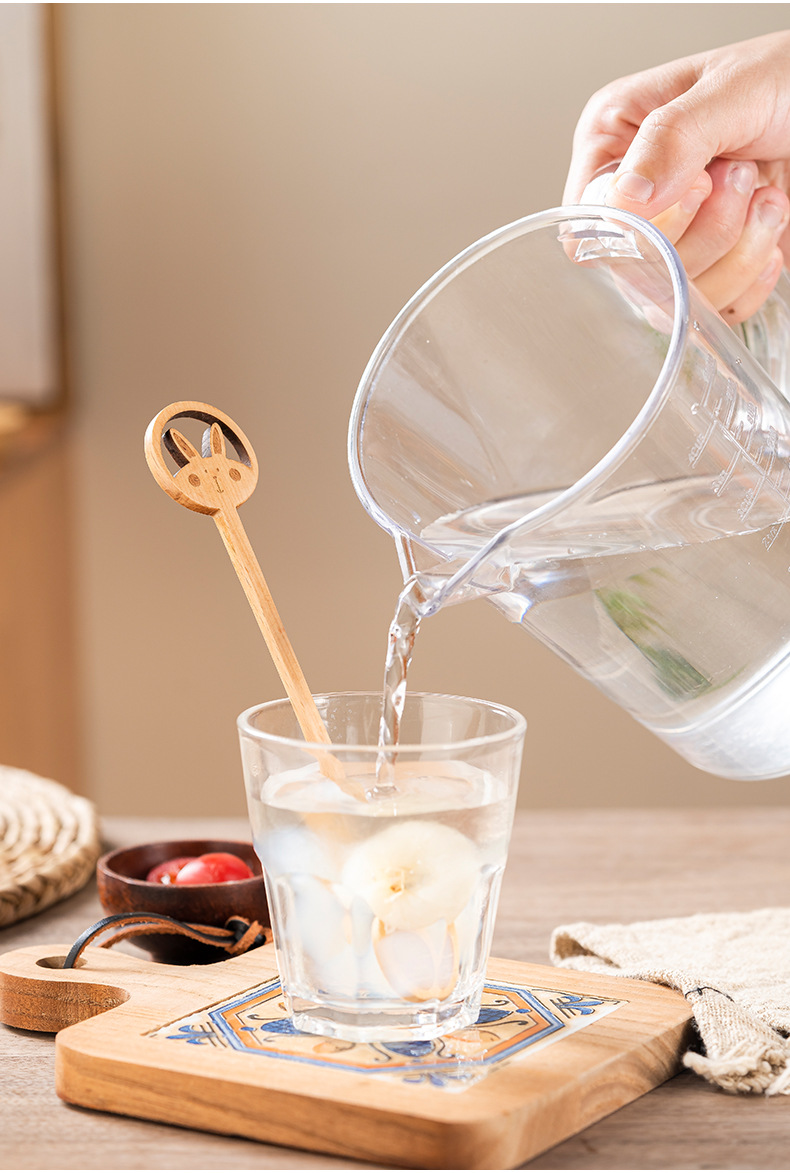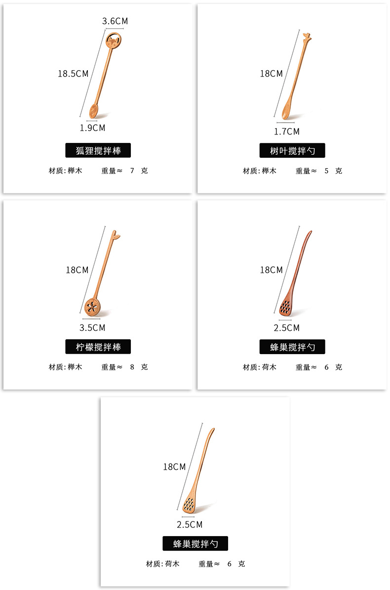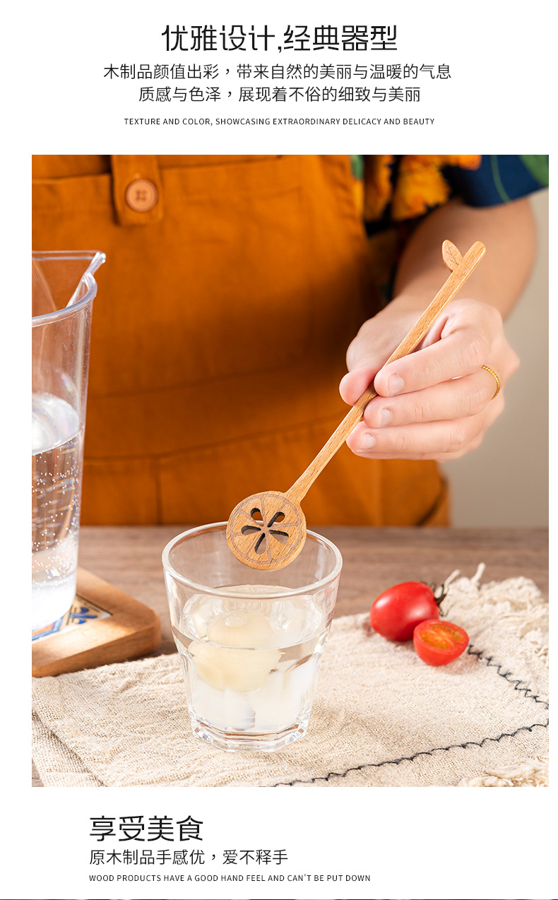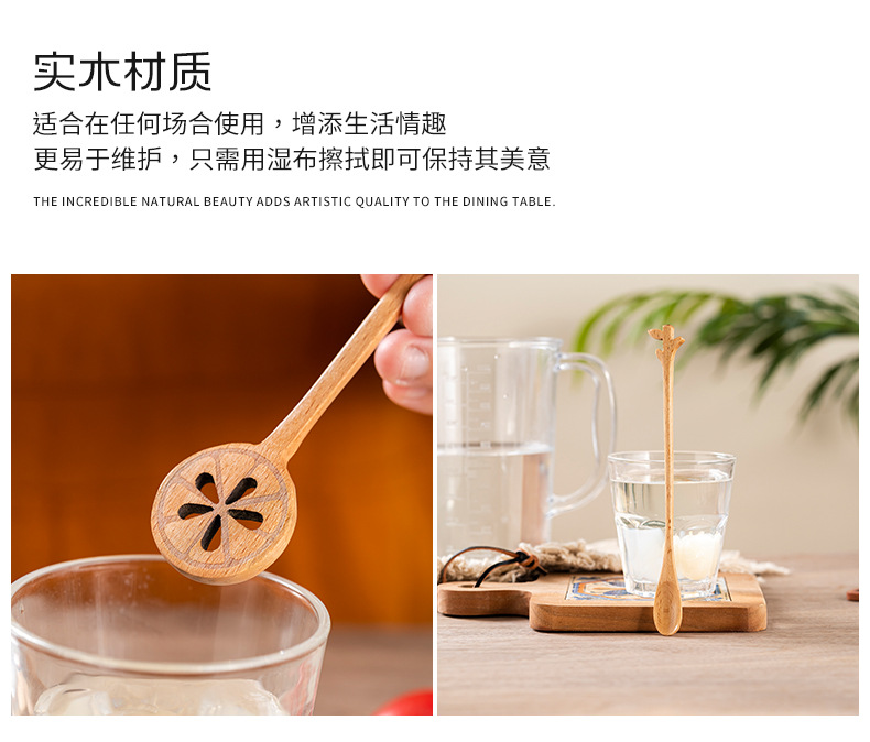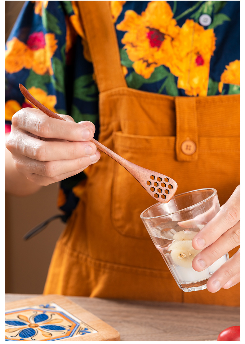 긴 손잡이 귀여운 만화 동물 믹싱 스푼 단단한 나무 커피 스푼 차 믹싱 스틱 나무 손잡이 식기 꿀 믹싱 스푼