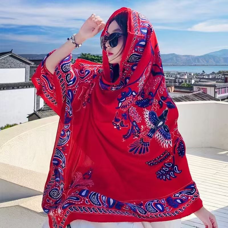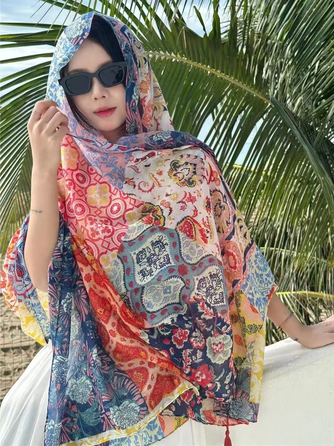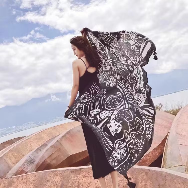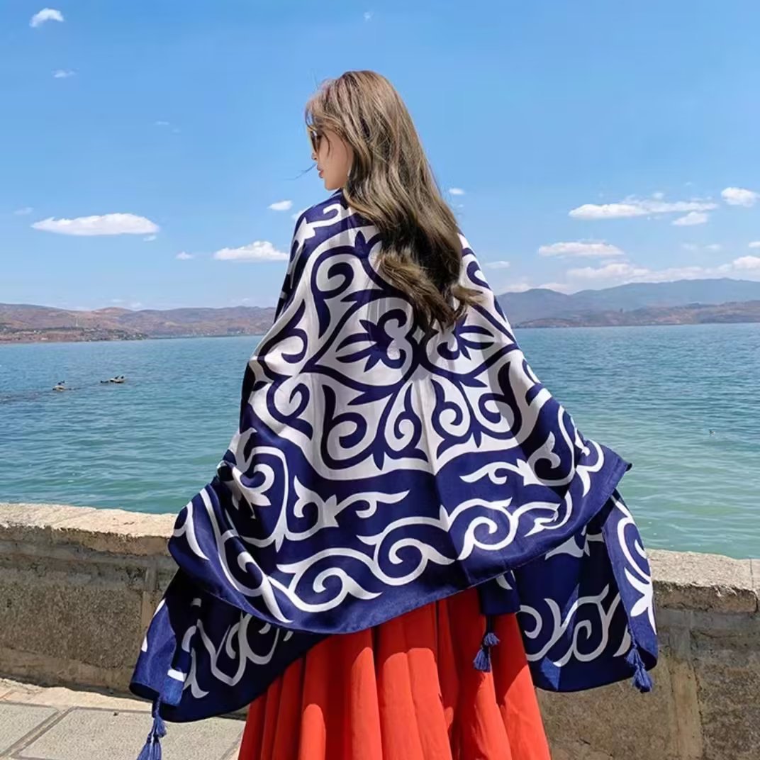 차카 솔트 레이크 그레이트 노스 웨스트 관광 에스닉 스타일 스카프 스카프 여성용 새로운 여름 해변 해변 숄 자외선 차단제 얇은