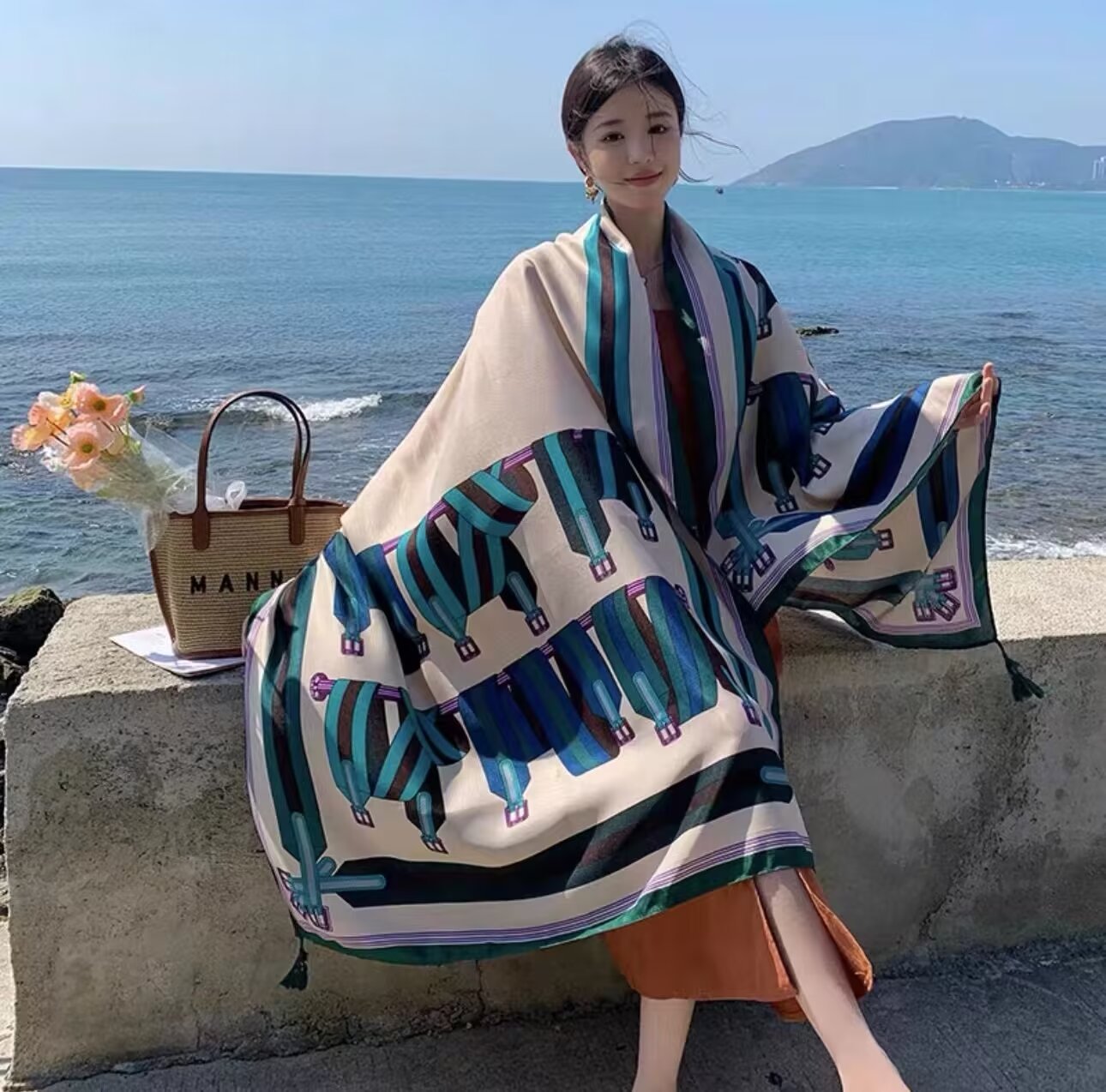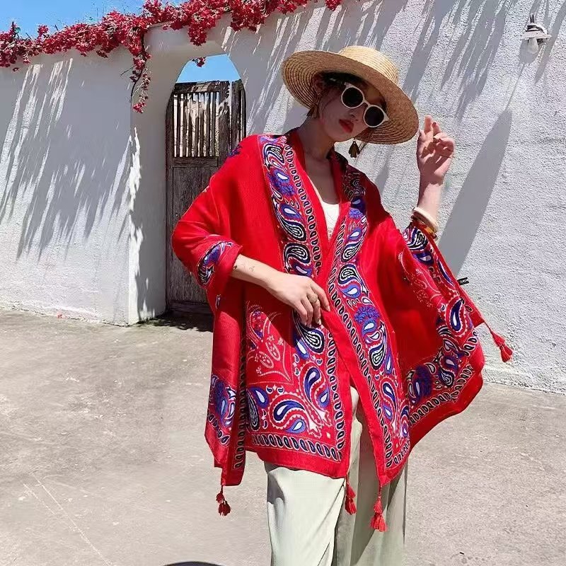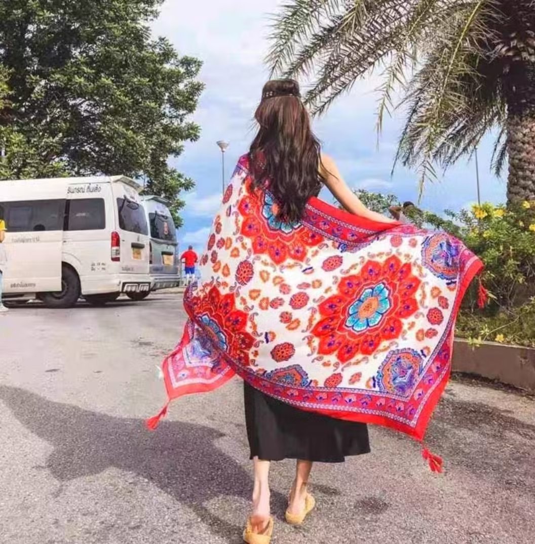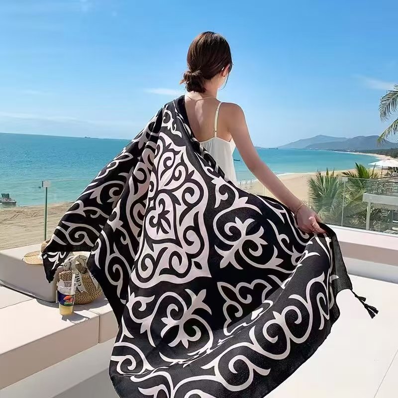 차카 솔트 레이크 그레이트 노스 웨스트 관광 에스닉 스타일 스카프 스카프 여성용 새로운 여름 해변 해변 숄 자외선 차단제 얇은