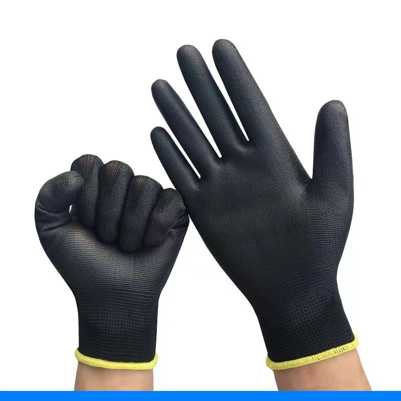 얇은 블랙 나일론 PU 손바닥 코팅 노동 장갑 담근 접착제 코팅 편안한 통기성 정전기 방지 작업 장갑 손가락 코팅