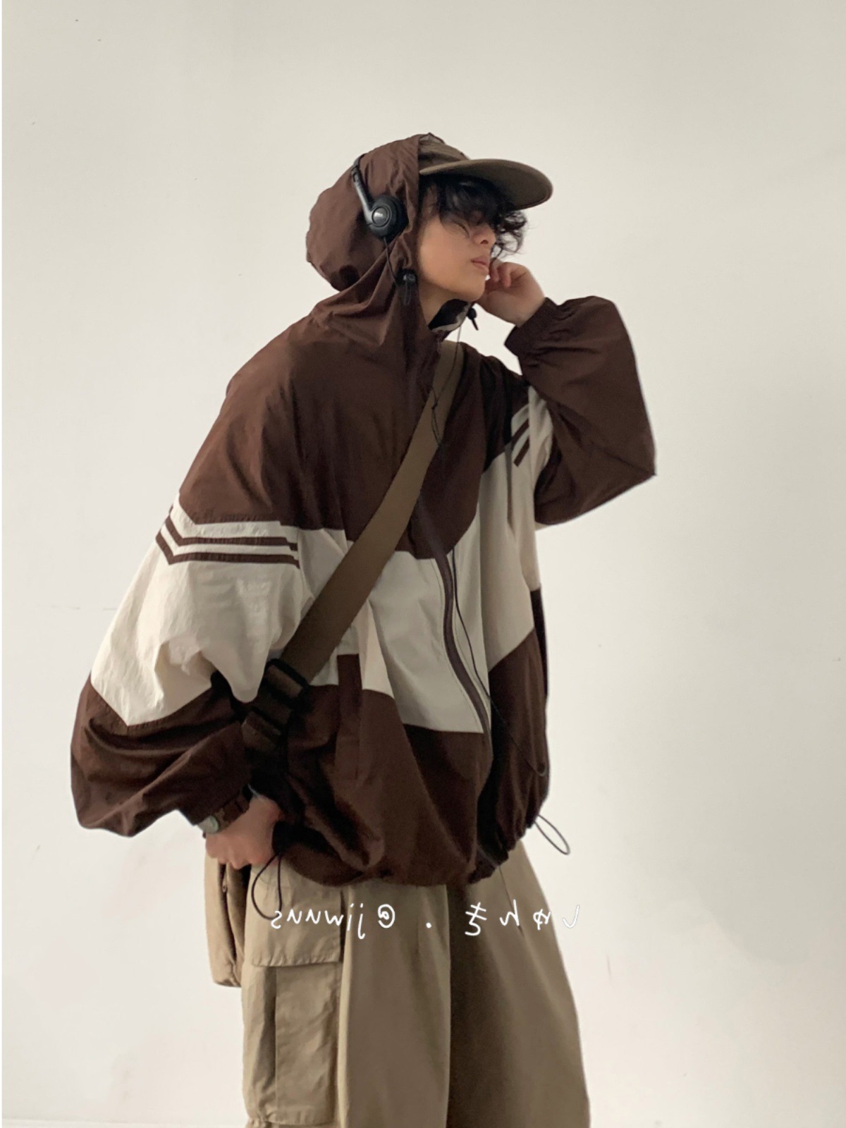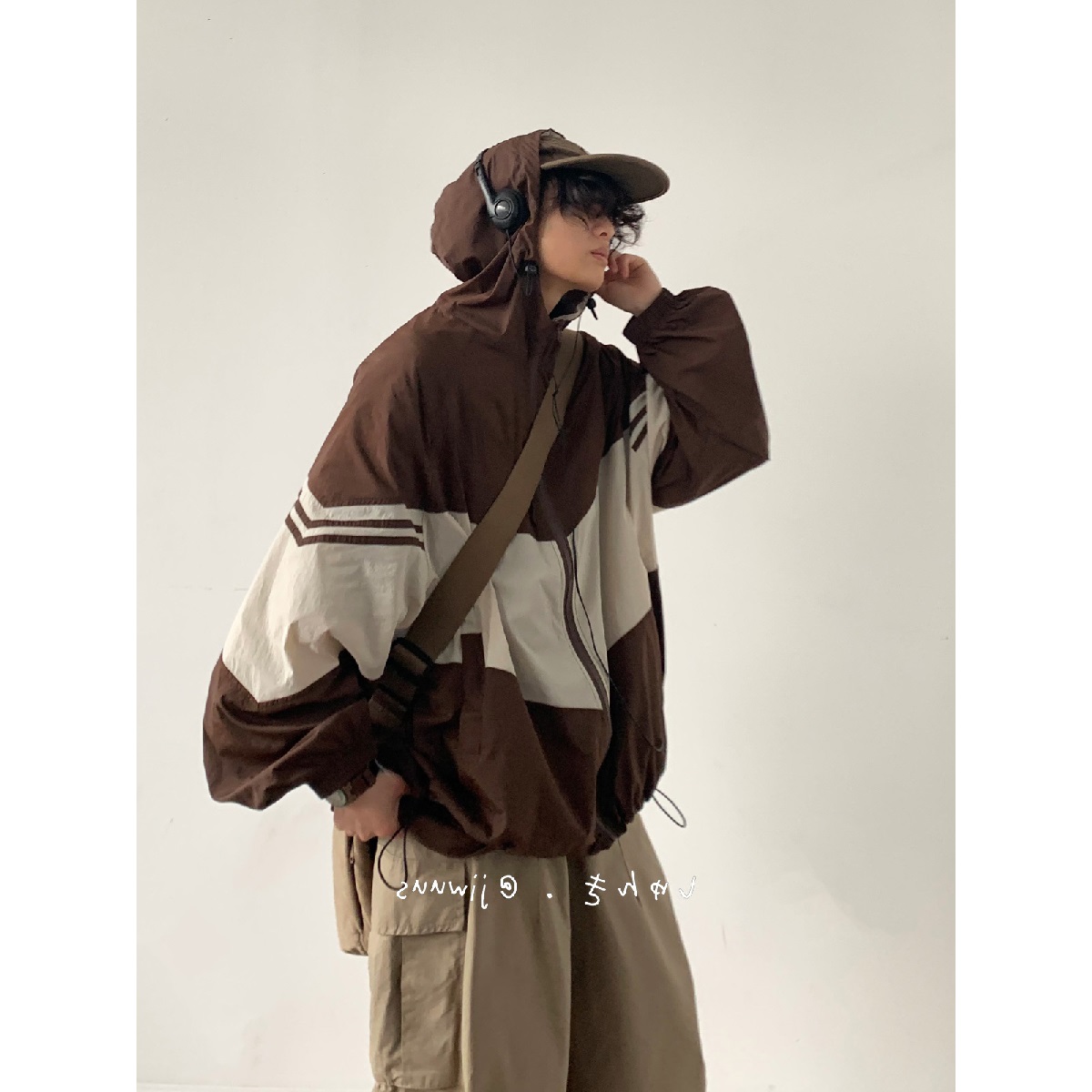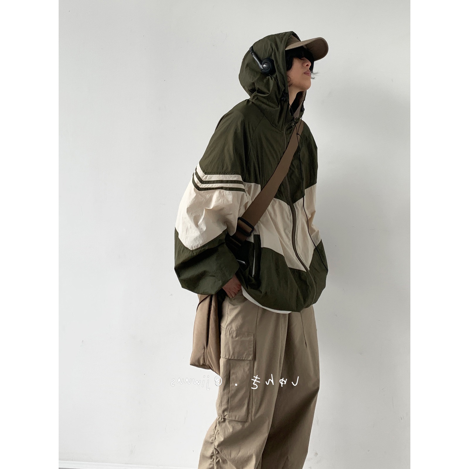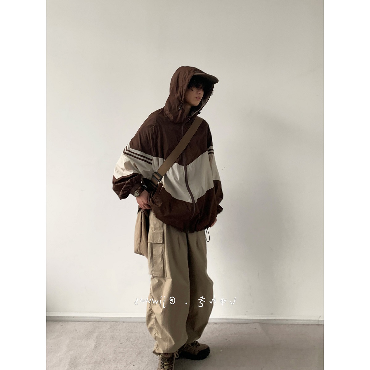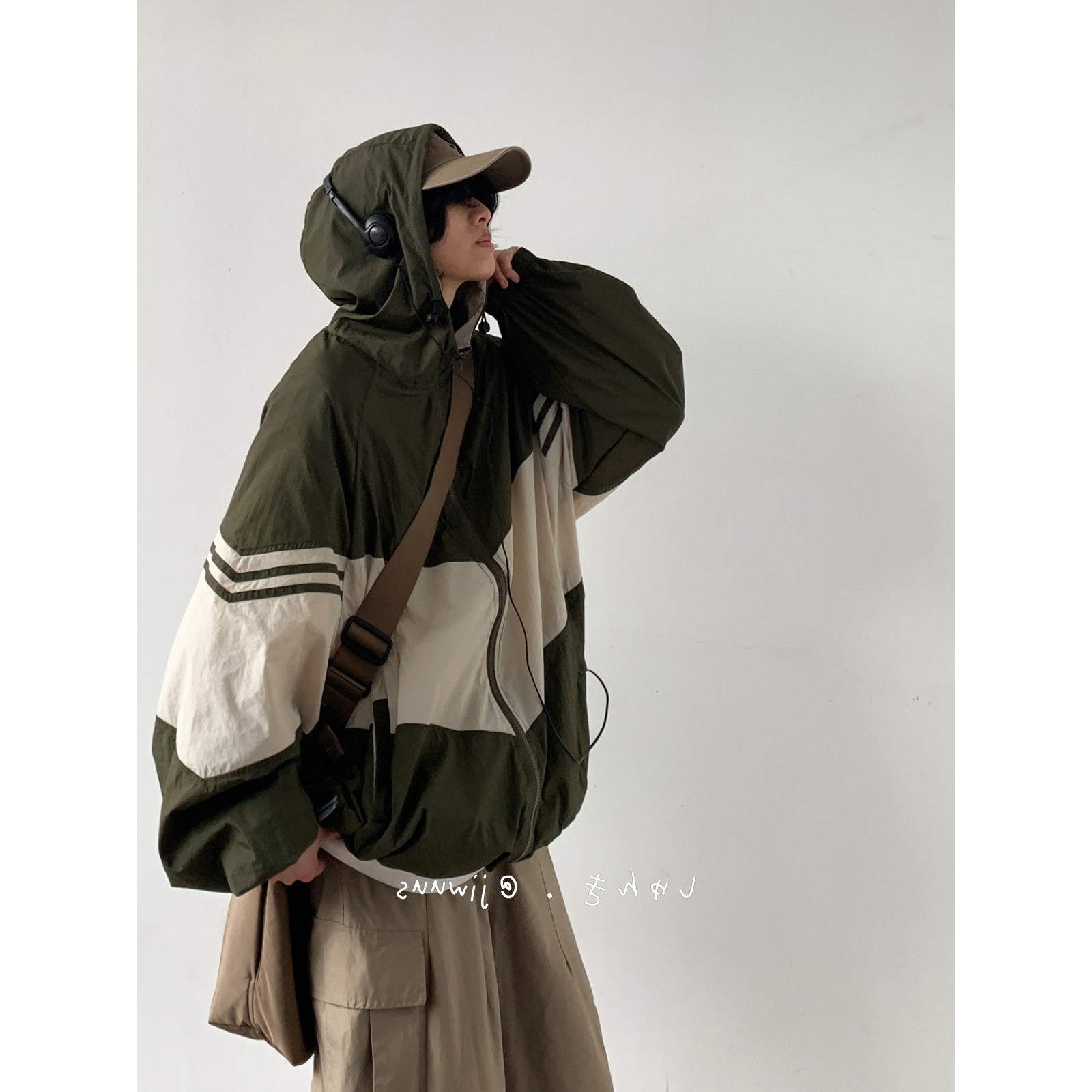 일본식 레트로 프로필 자외선 차단제 재킷 여름 얇은 남성과 여성의 느슨한 색상 접합 야외 자외선 차단제 작업 바지스토어 가기