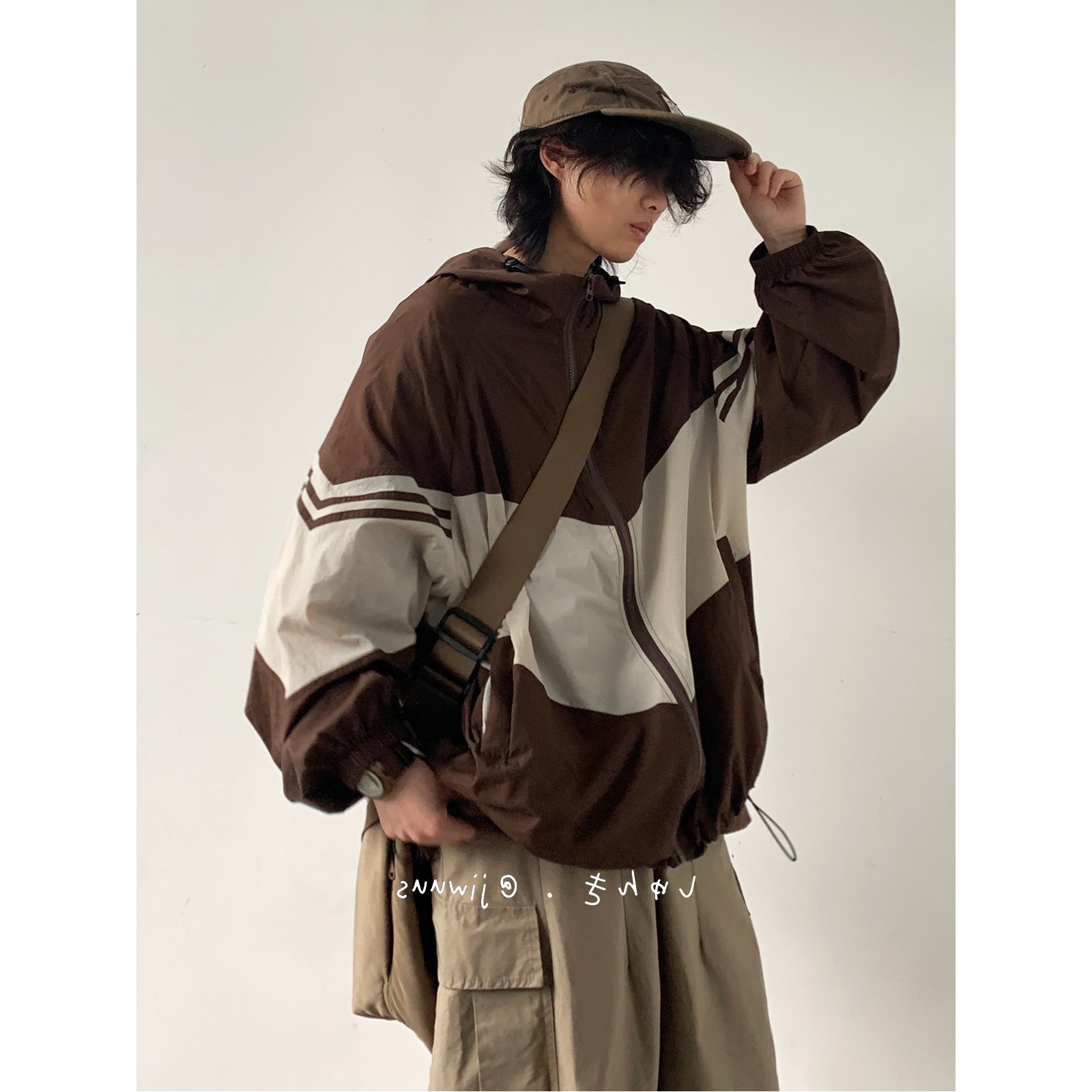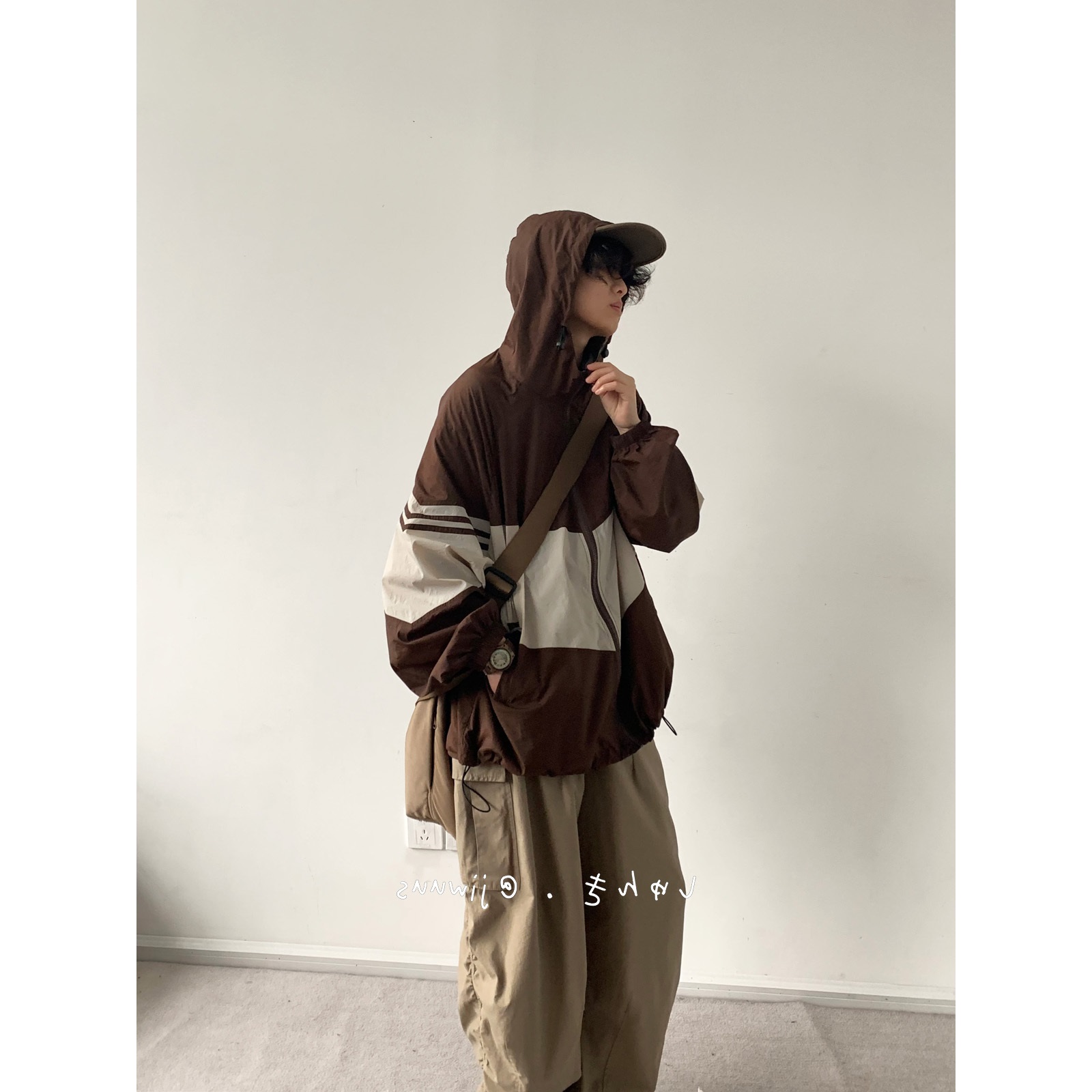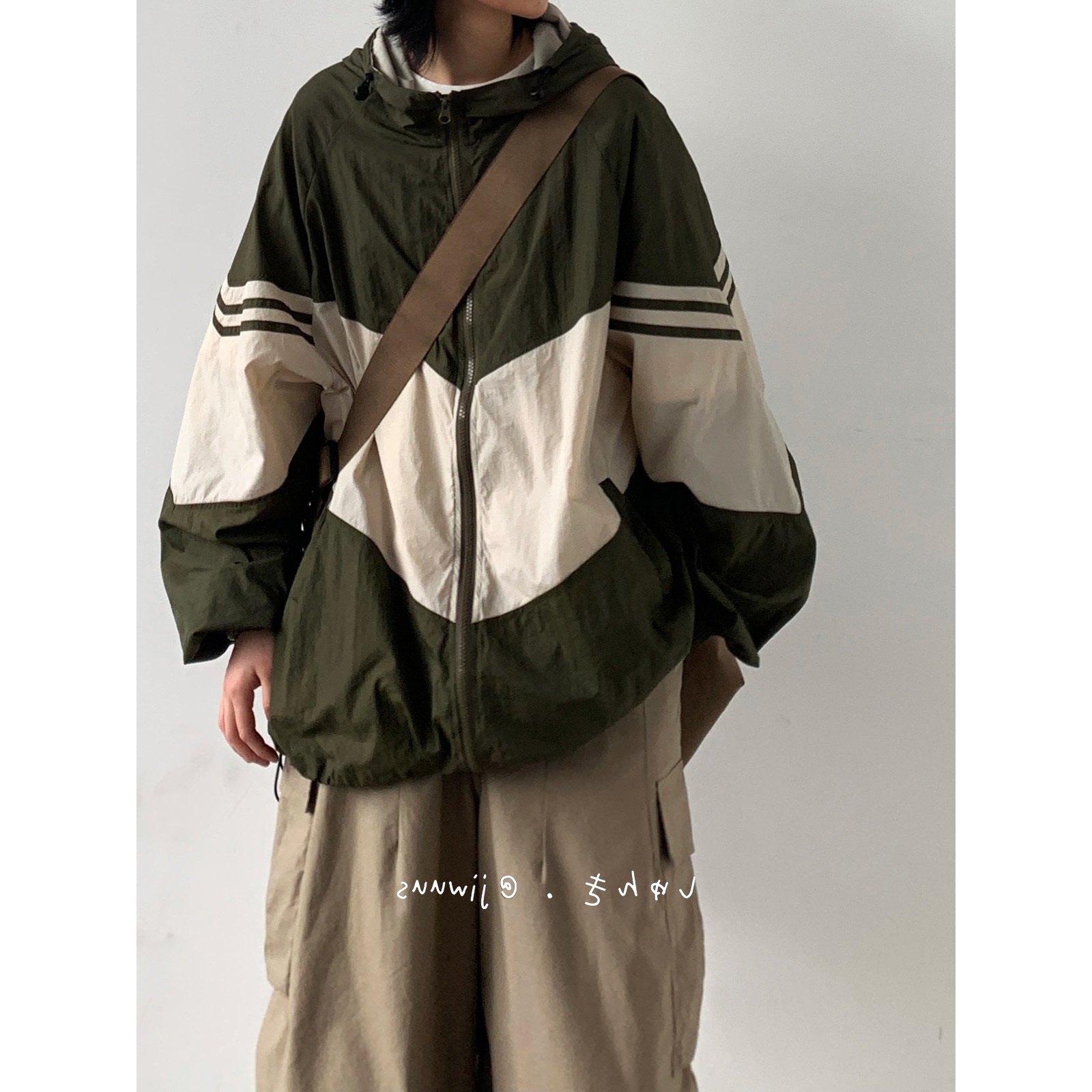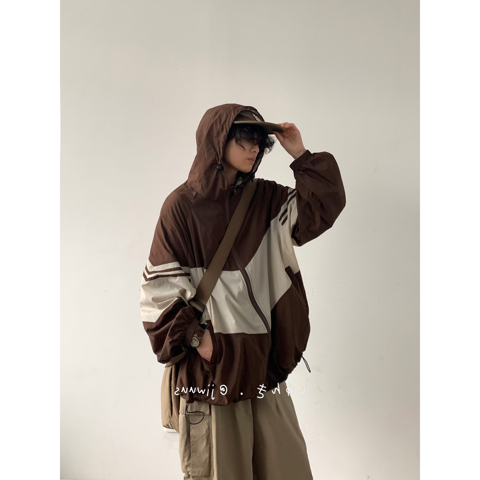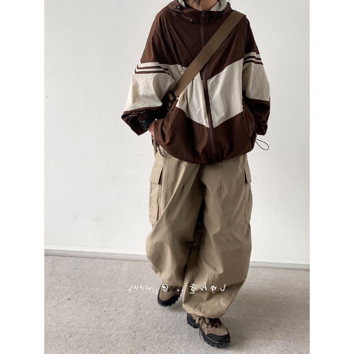 일본식 레트로 프로필 자외선 차단제 재킷 여름 얇은 남성과 여성의 느슨한 색상 접합 야외 자외선 차단제 작업 바지스토어 가기