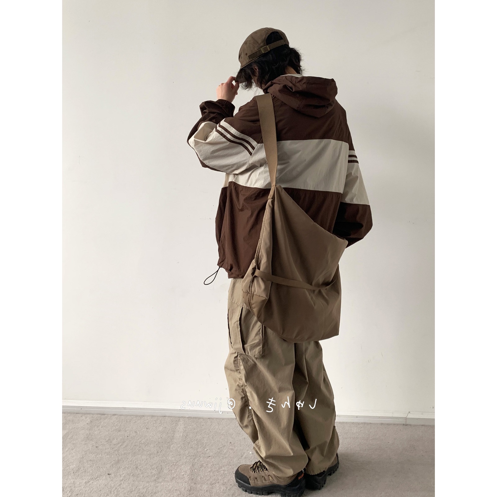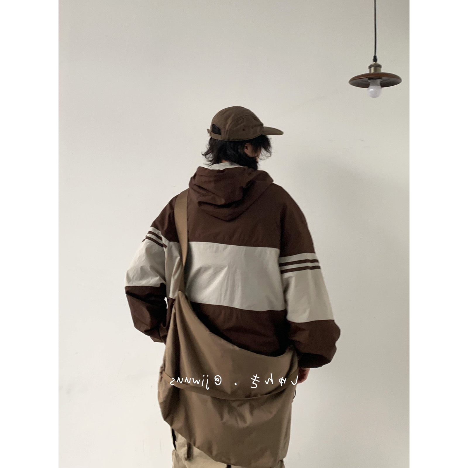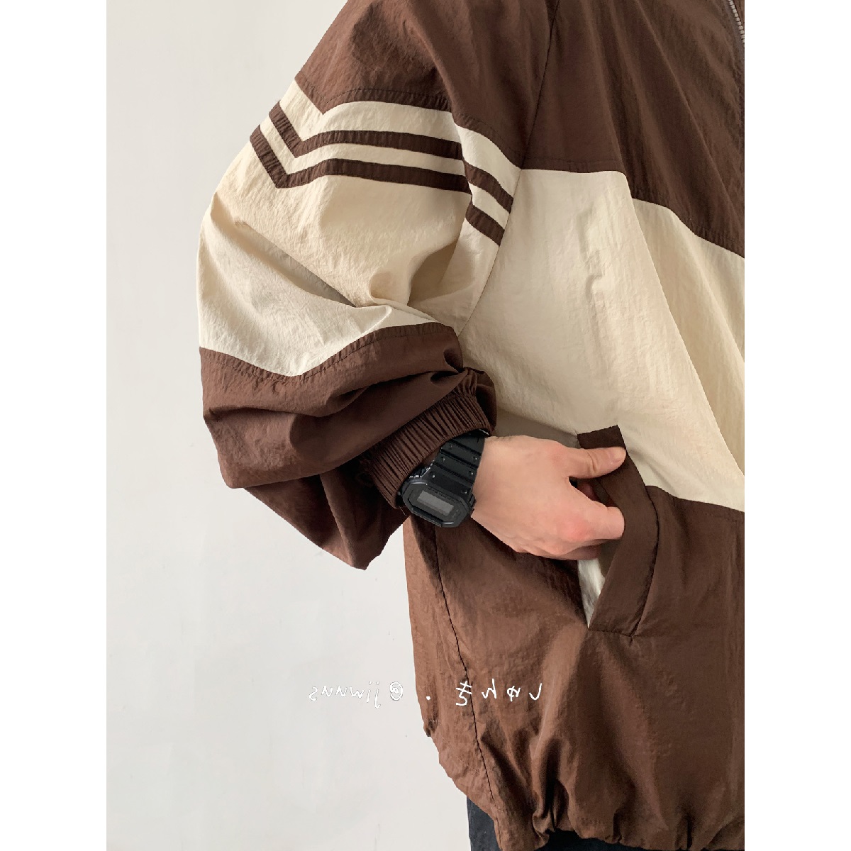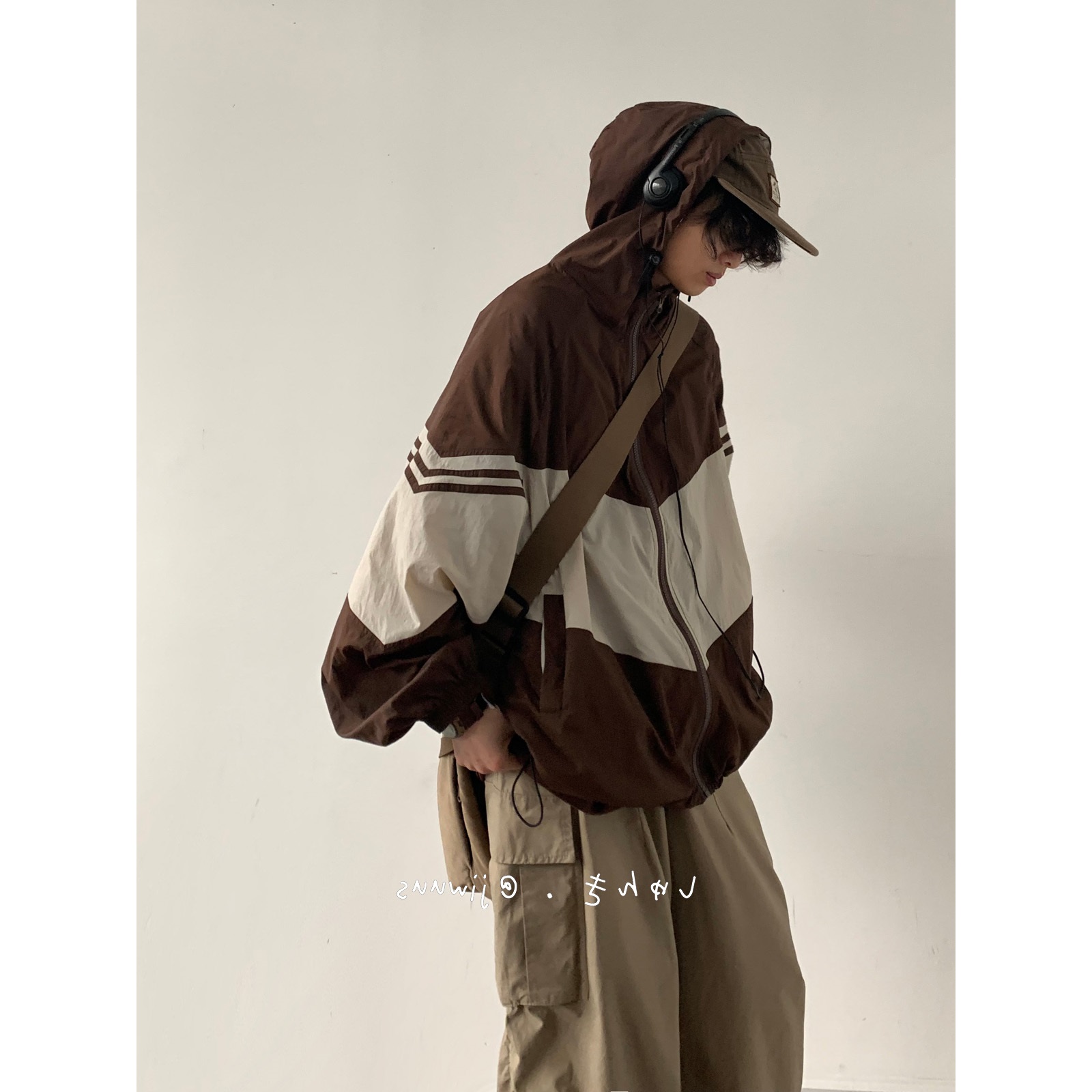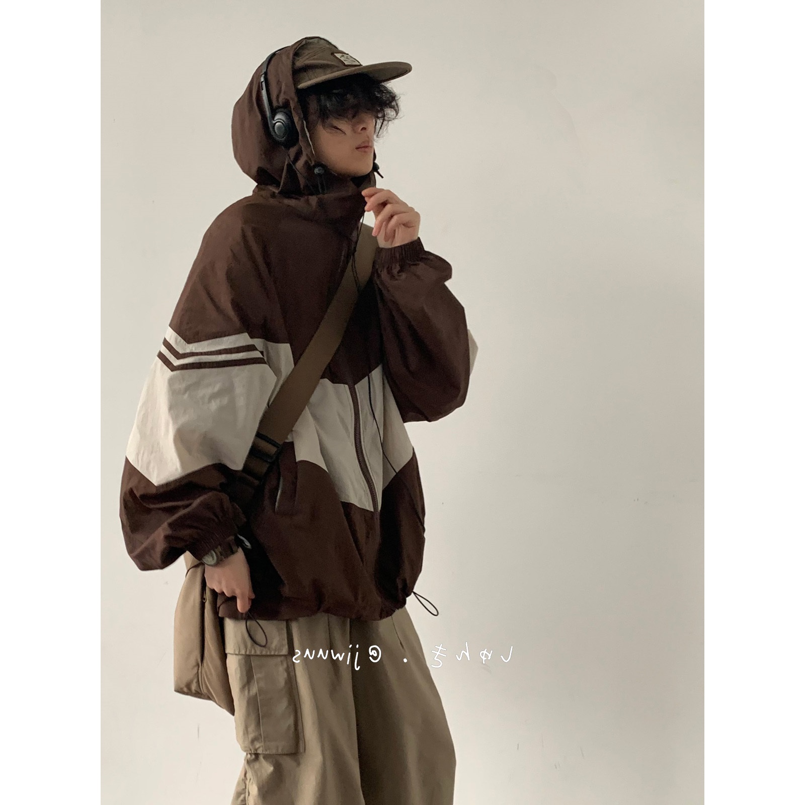 일본식 레트로 프로필 자외선 차단제 재킷 여름 얇은 남성과 여성의 느슨한 색상 접합 야외 자외선 차단제 작업 바지스토어 가기