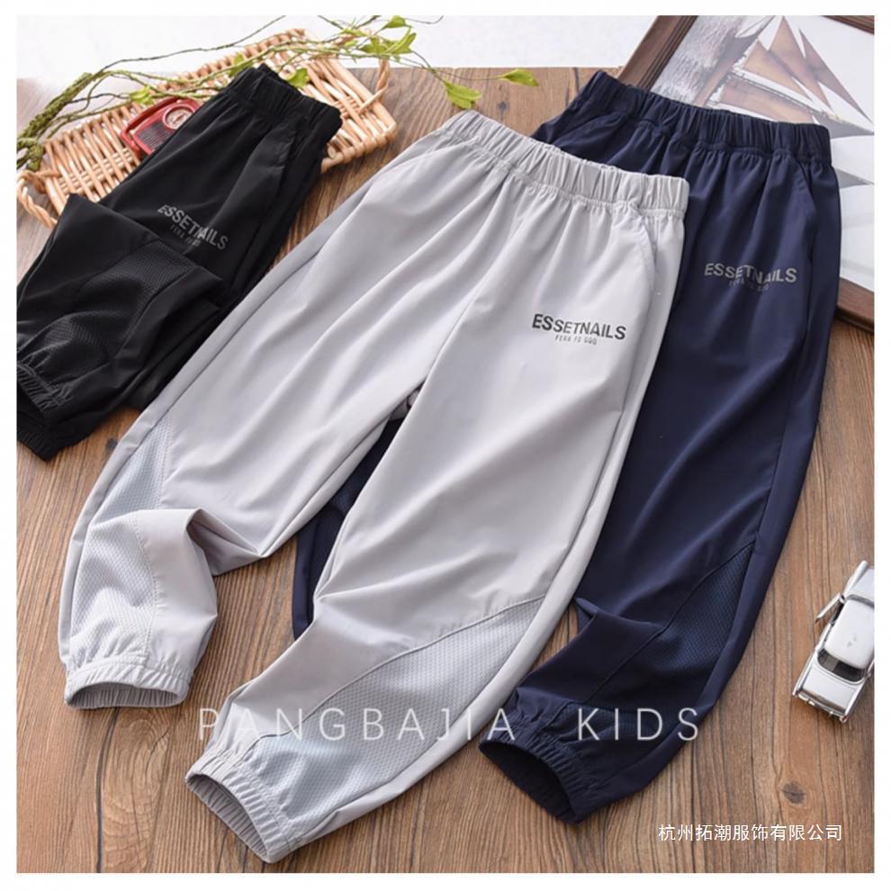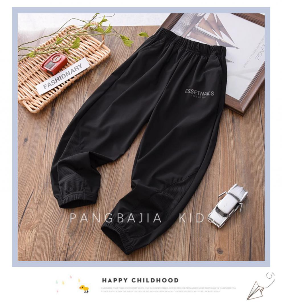 어린이 바지 여름 소년 아이스 실크 바지 2023 새로운 한국 스타일 중대형 어린이 메쉬 통기성 서양식 스포츠 바지