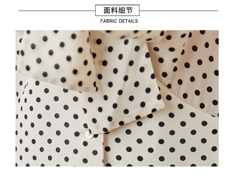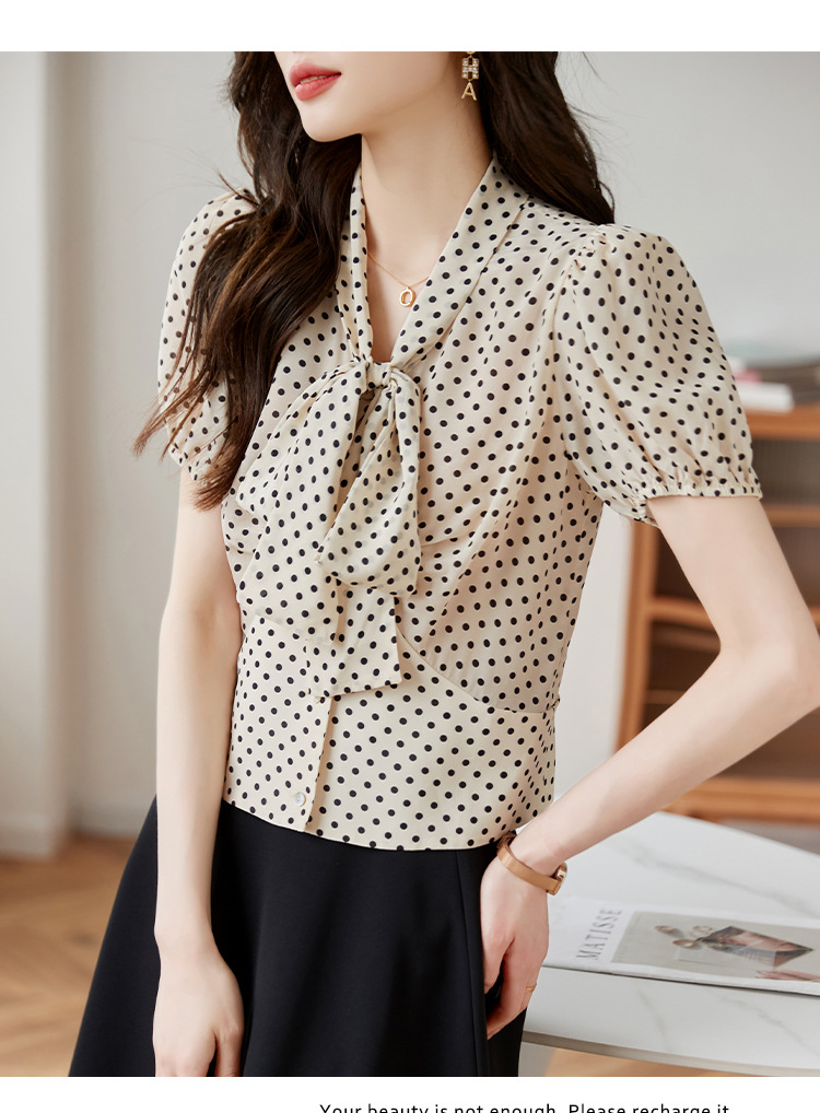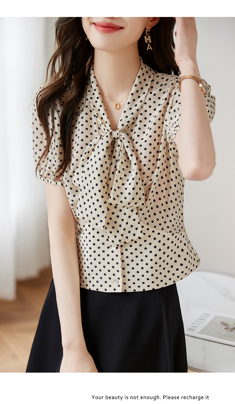 레트로 폴카 도트 실크 셔츠 여성 여름 새 스타일 레이스 업 칼라 셔츠 퍼프 슬리브 탑스토어 가기
