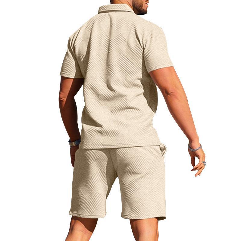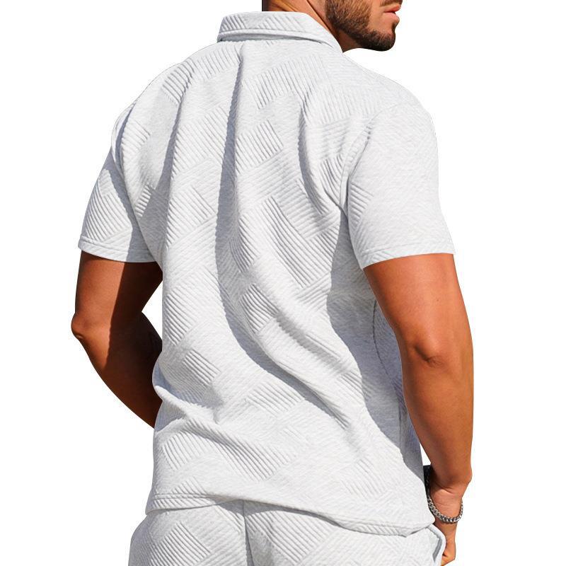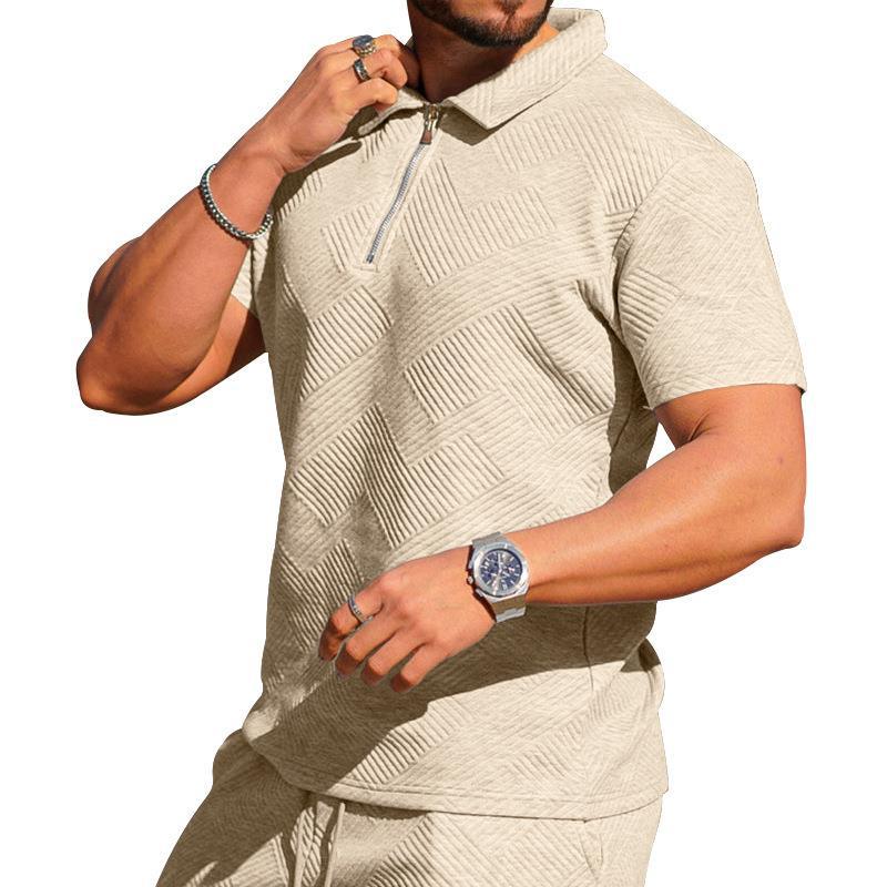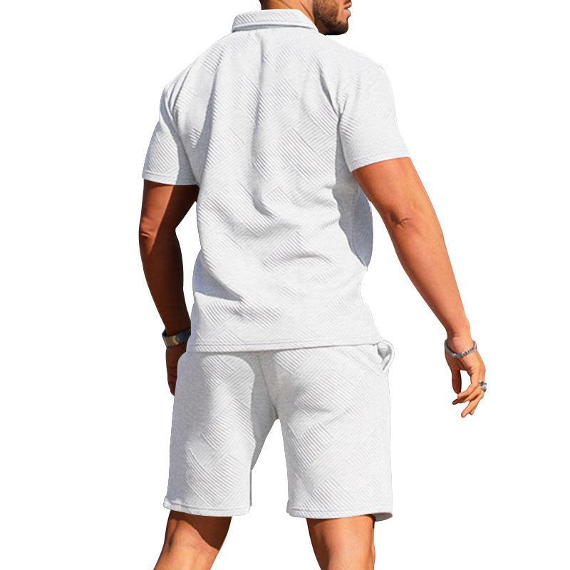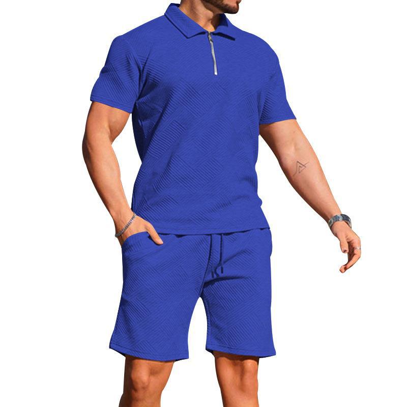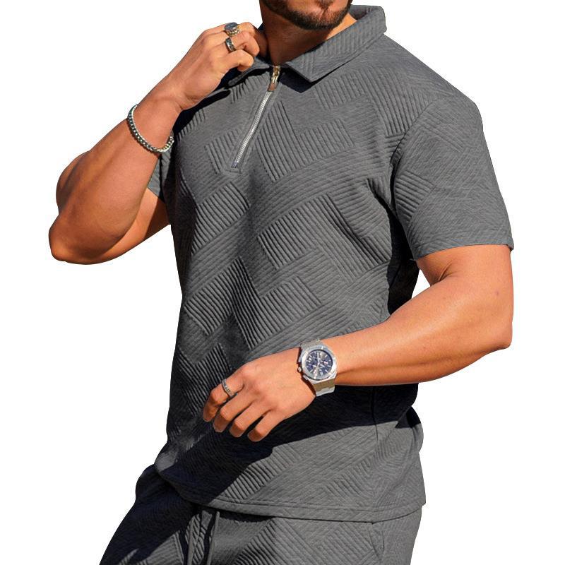 크로스보더 해외 무역 남성 폴로 셔츠 남성 캐주얼 반팔 라펠 티셔츠 질감 반바지 폴로 셔츠 투피스 세트