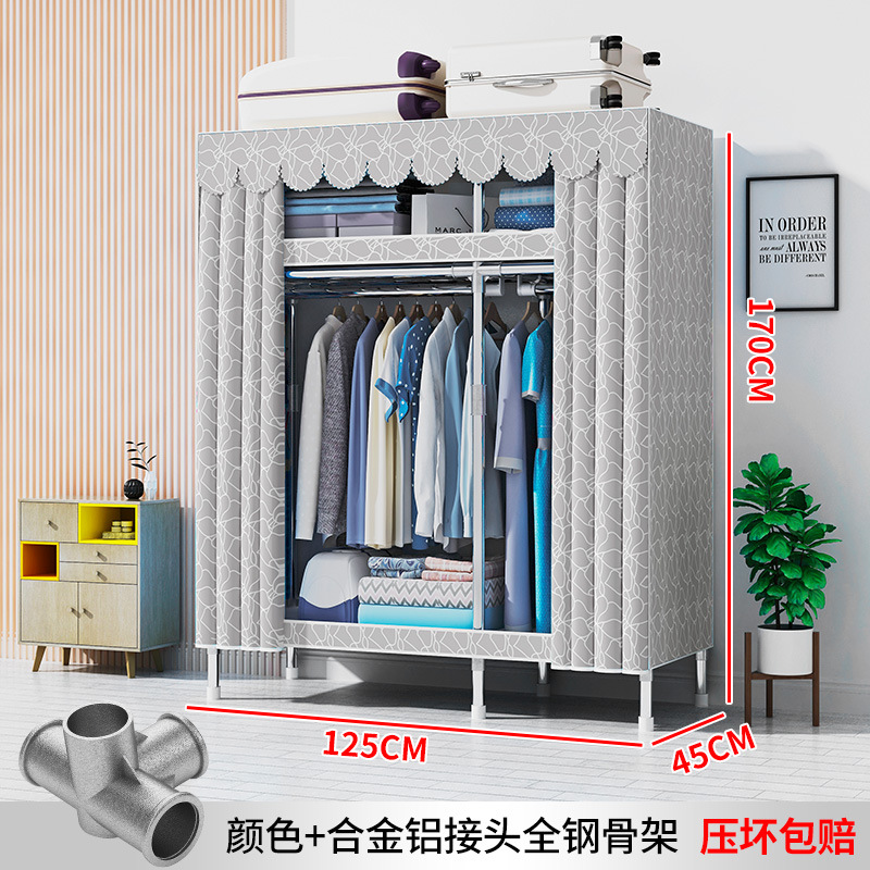 간단한 천 옷장 가정용 침실 대담한 강철 튜브 완전히 밀폐 된 보관 보관 캐비닛 강력하고 튼튼한 닫힌 교수형 옷장