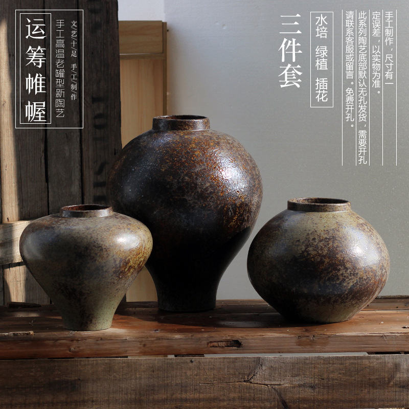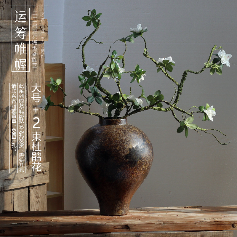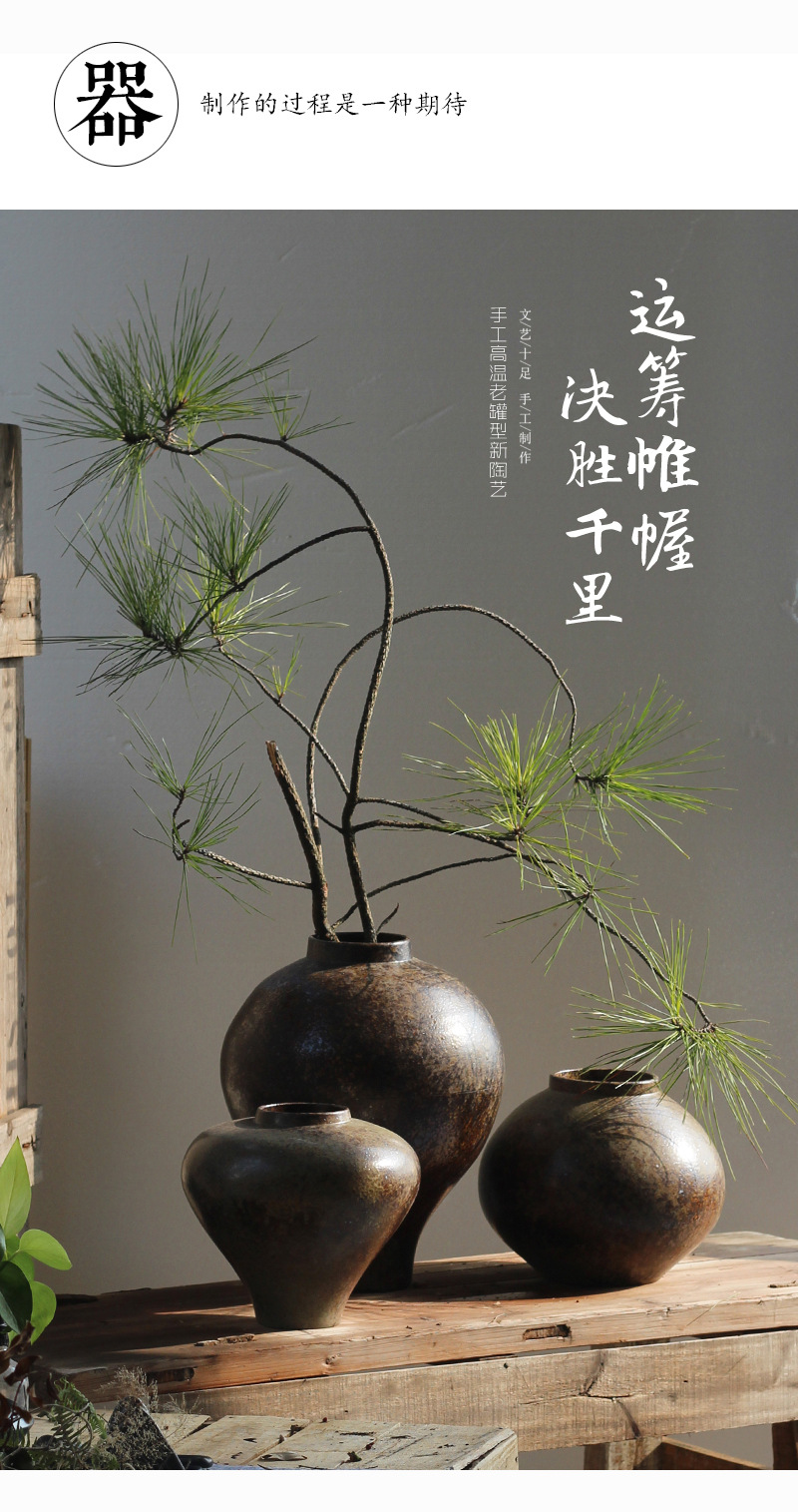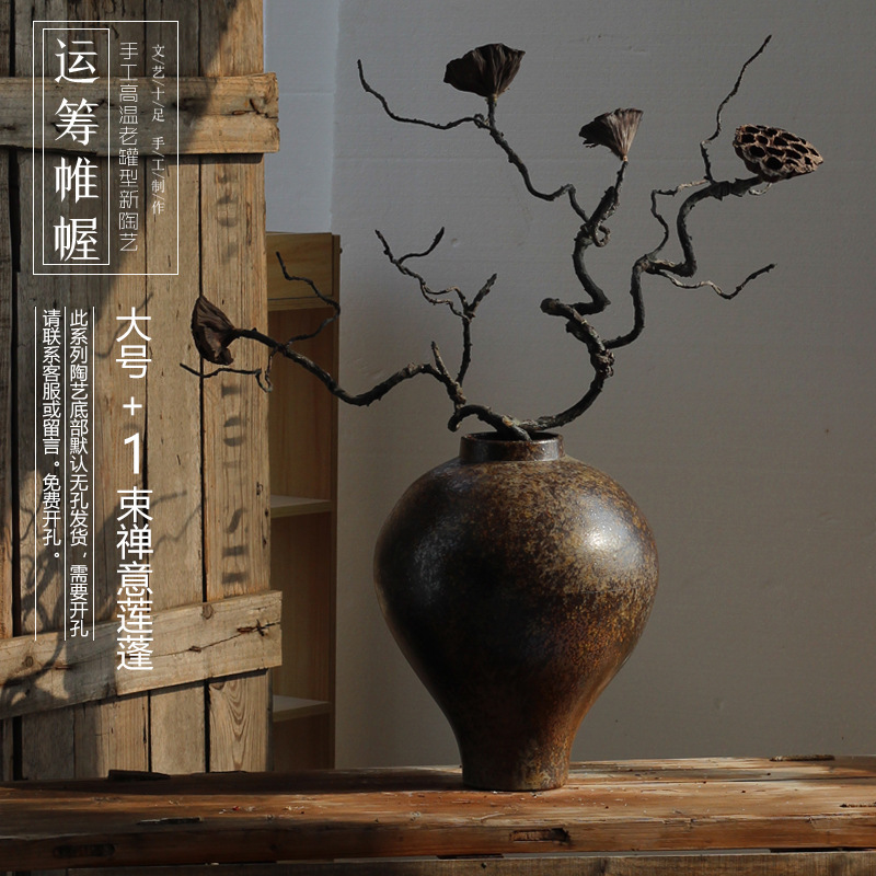 젠 레트로 새로운 홈스테이 세라믹 꽃병 레스토랑 모델 룸 거실 홈 장식 장식품 도자기 냄비 항아리스토어 가기