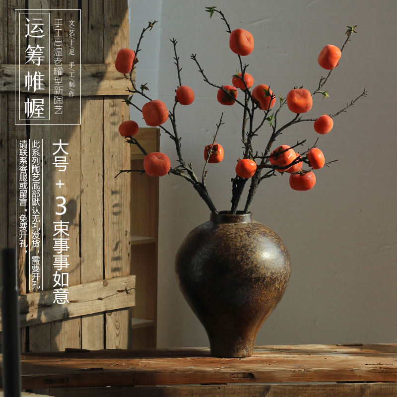 젠 레트로 새로운 홈스테이 세라믹 꽃병 레스토랑 모델 룸 거실 홈 장식 장식품 도자기 냄비 항아리