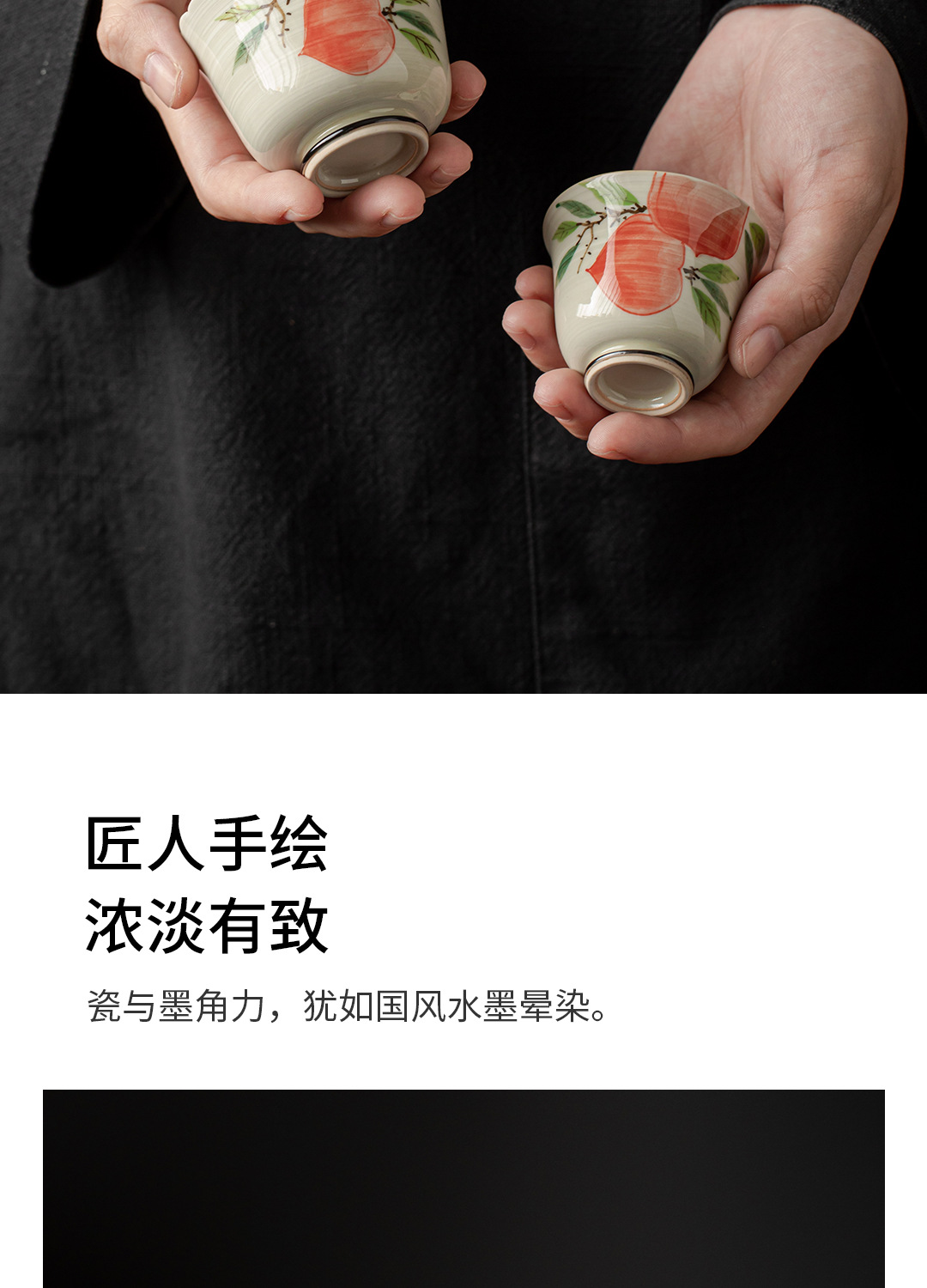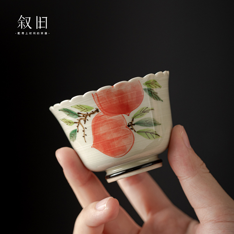 캐치 업 손으로 그린 파우더 쿵푸 찻잔 향수 컵 높은 발 컵 가정용 세라믹 차 시음 컵 싱글 마스터 컵 빈티지스토어 가기