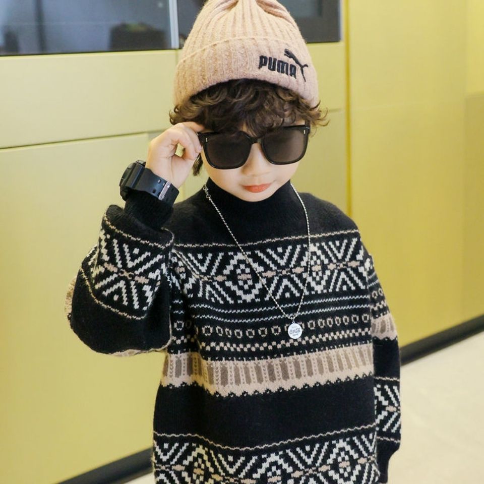 2023 소년 니트 스웨터 가을과 겨울 두꺼운 따뜻한 백킹 셔츠 풀오버 어린이를위한 트렌디 한 탑스토어 가기