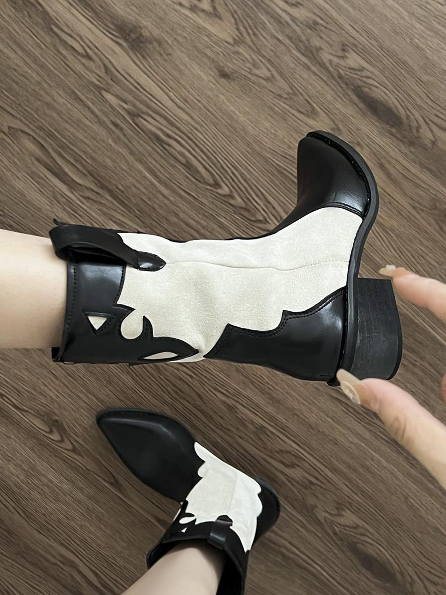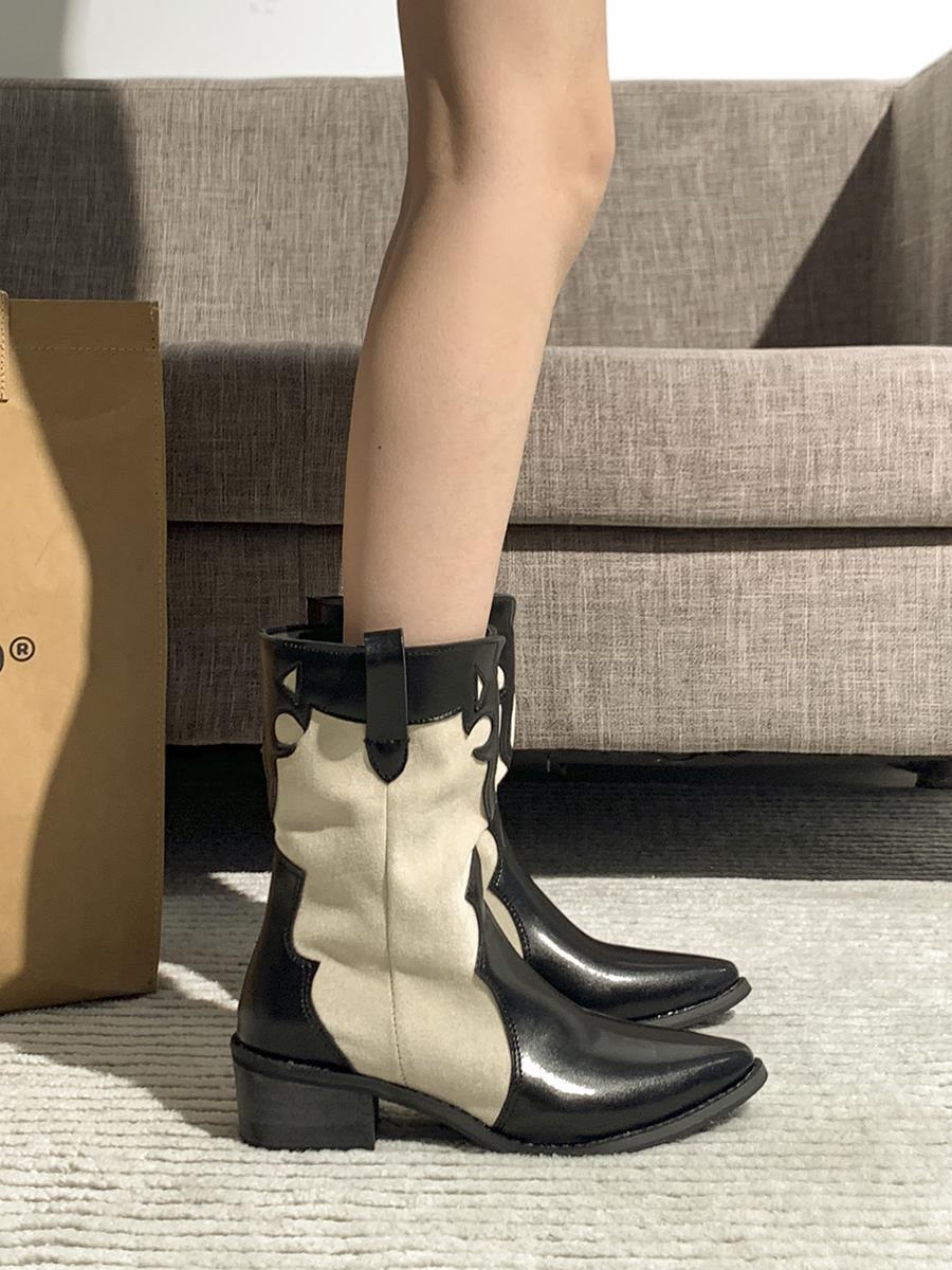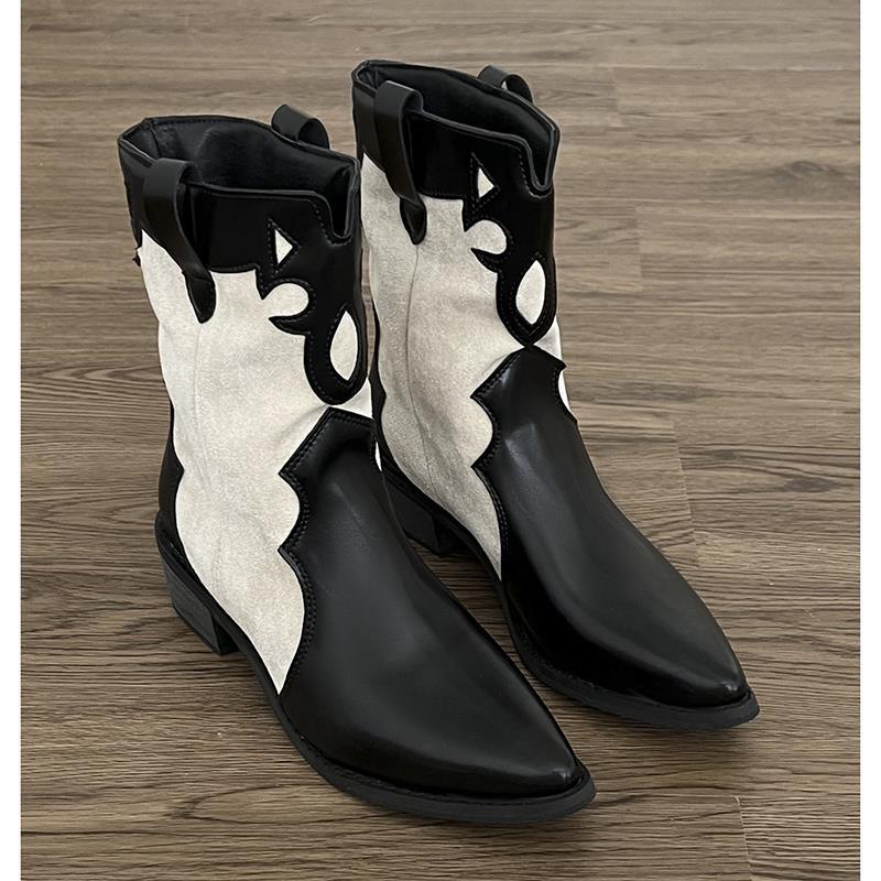 블랙 디자인 틈새 지적 발가락 아메리칸 부츠 여성 여름 스타일 2025 뉴 나이트 부츠 레트로 웨스턴 카우보이 부츠