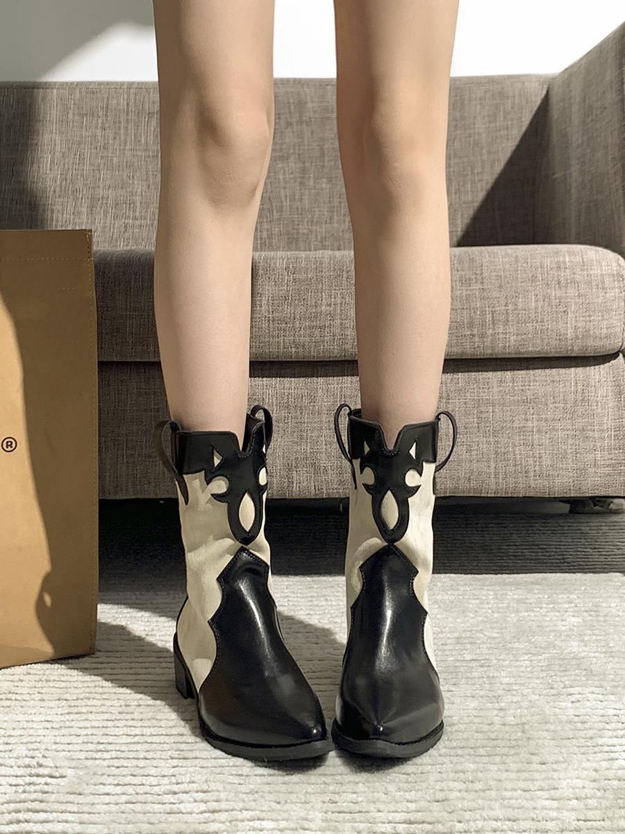 블랙 디자인 틈새 지적 발가락 아메리칸 부츠 여성 여름 스타일 2025 뉴 나이트 부츠 레트로 웨스턴 카우보이 부츠스토어 가기