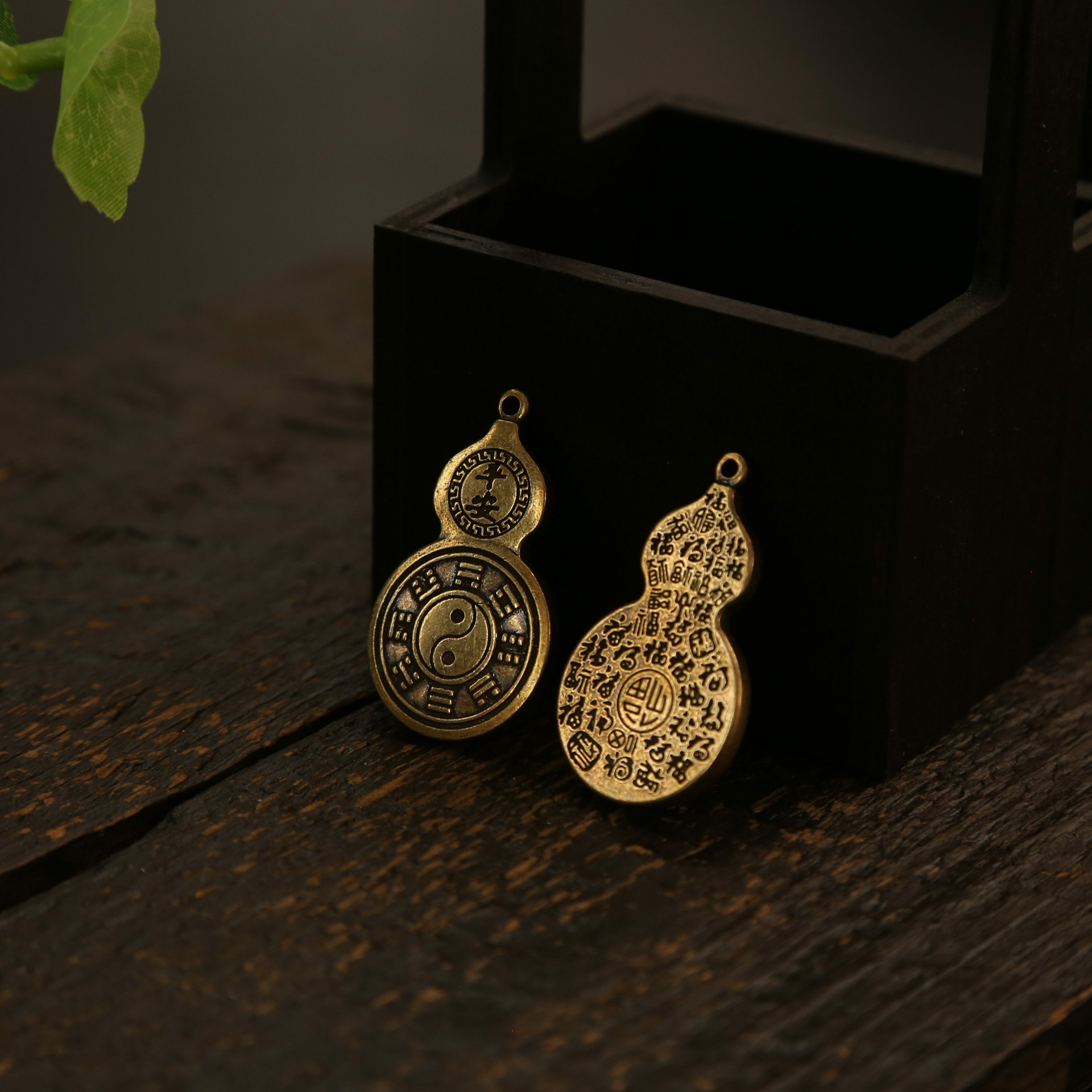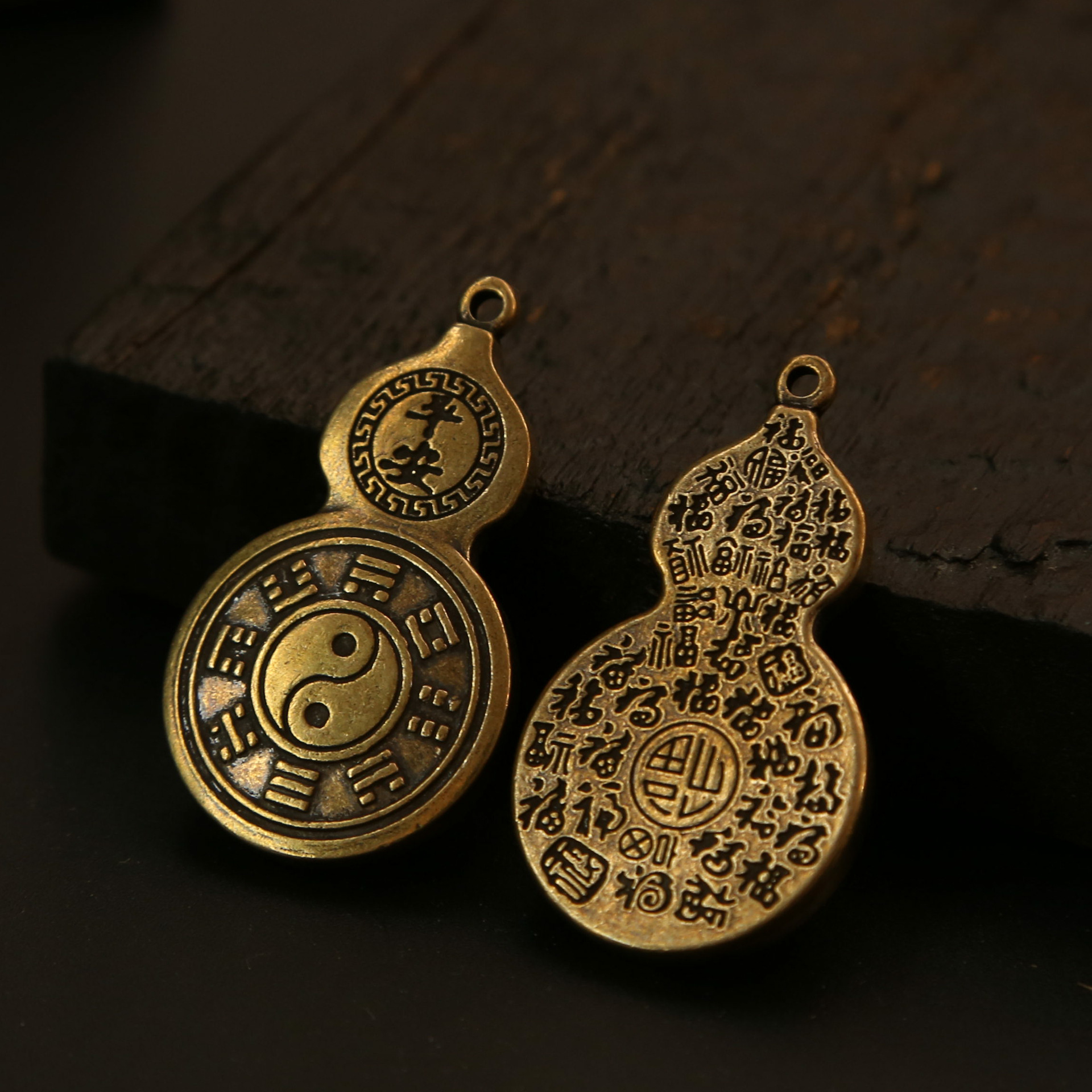 황동 Baifu Bagua 조롱박 키 체인 액세서리 Taiji Bagua Ping An 브랜드 남성 및 여성용 가방 자동차 키 펜던트스토어 가기