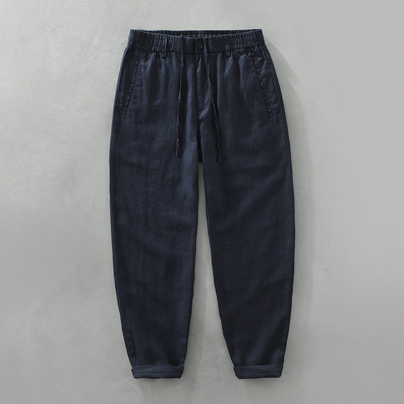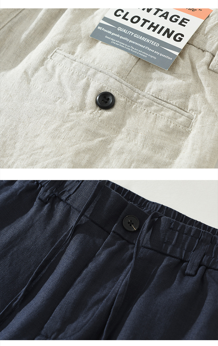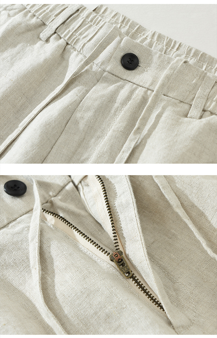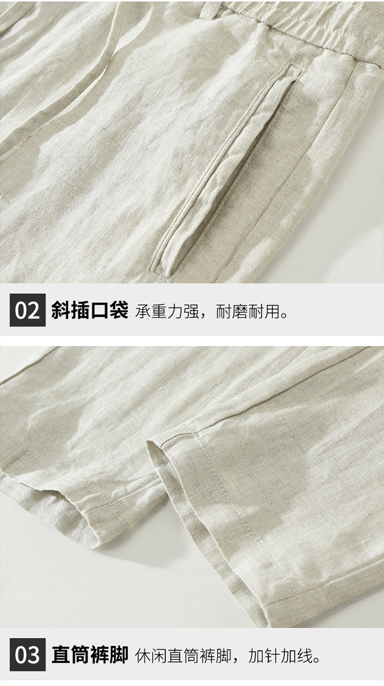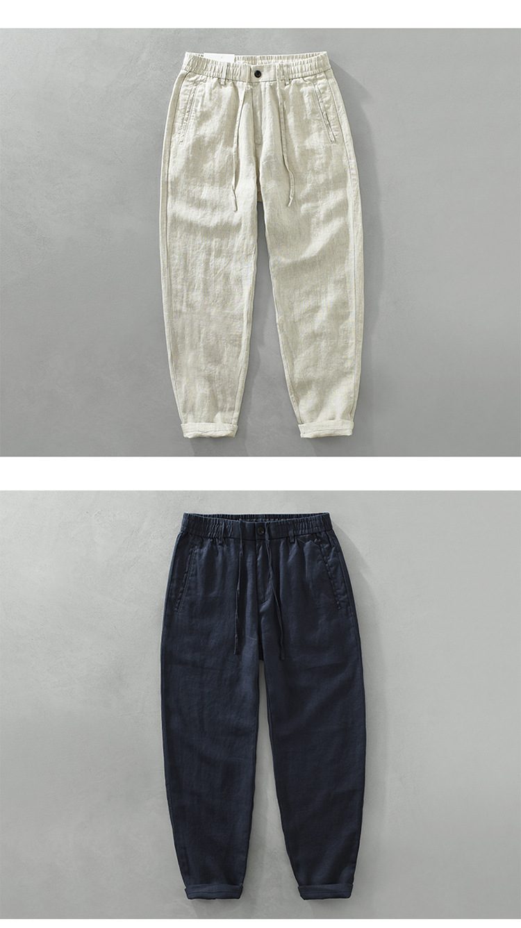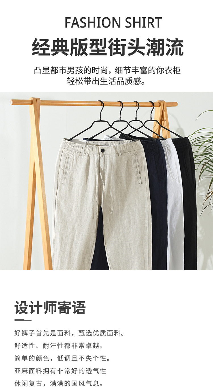 1606 사계절 새로운 남성용 린넨 캐주얼 바지 졸라매는 끈 스트레치 허리 바지 느슨한 통기성 린넨 비치 바지