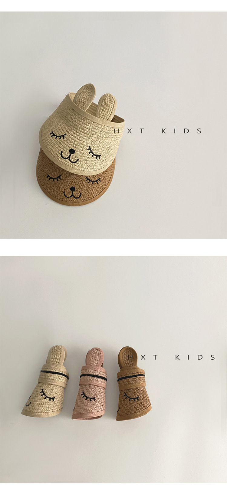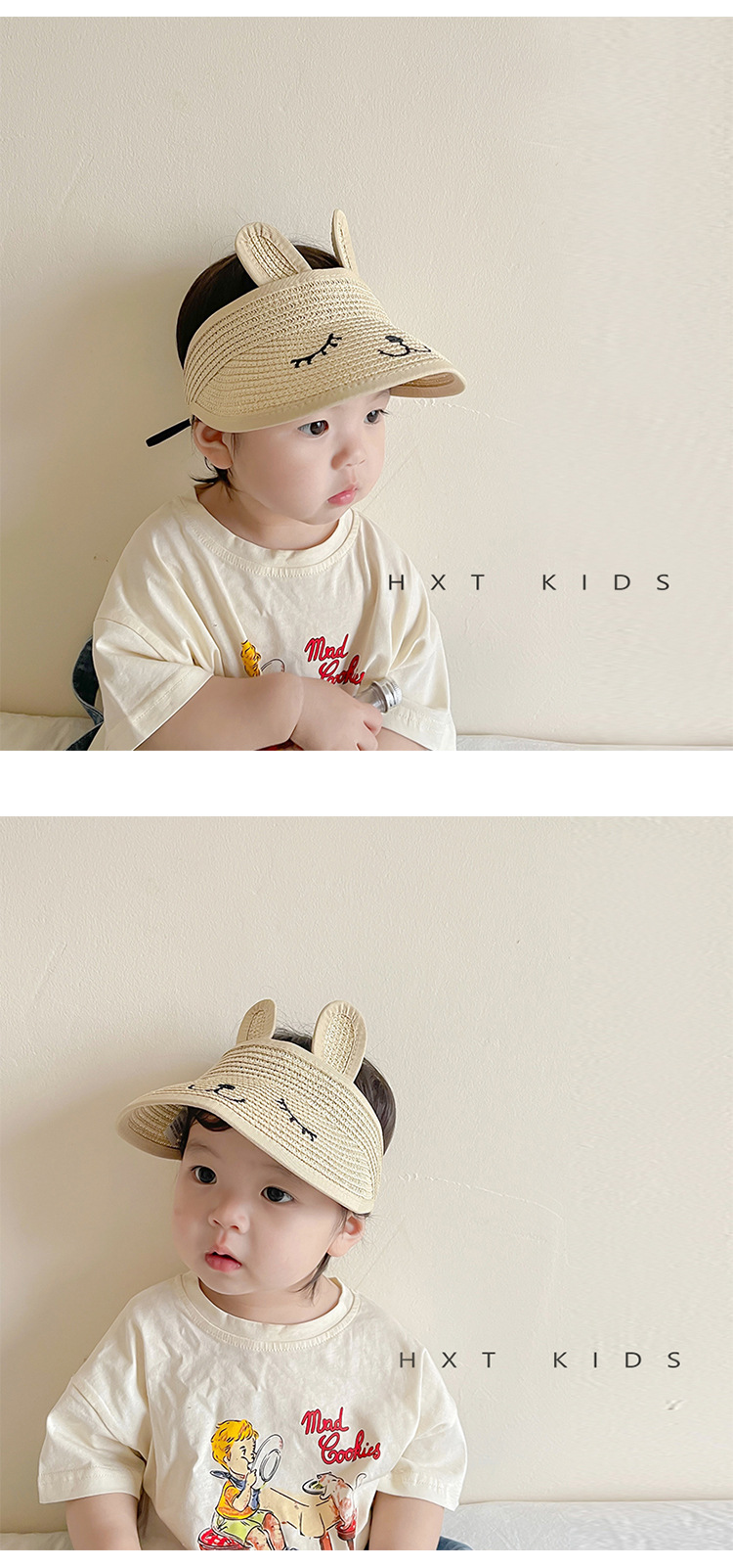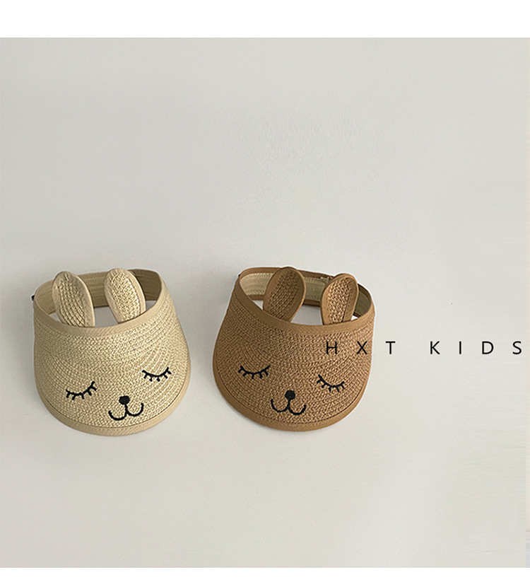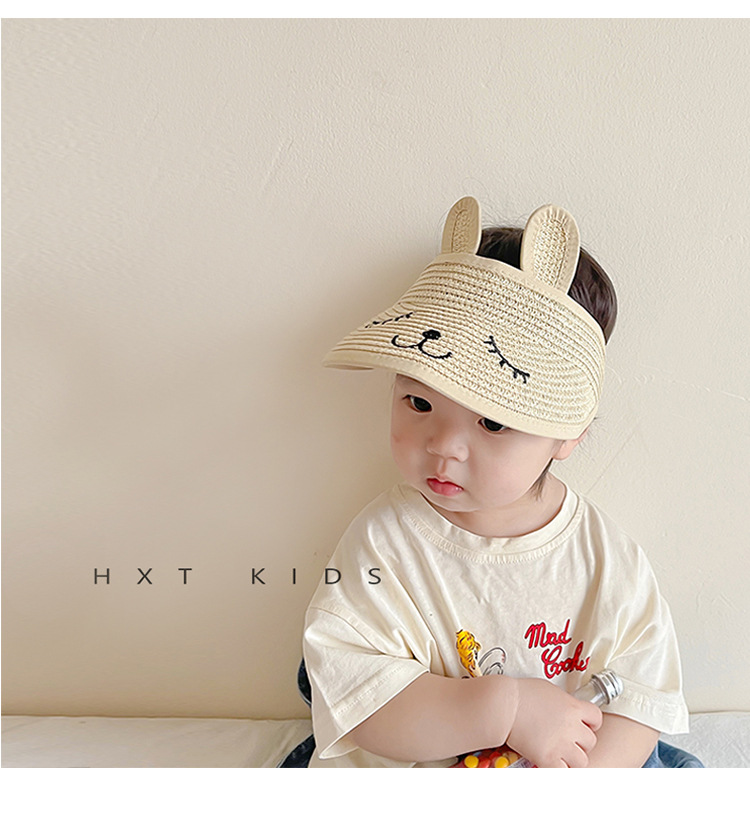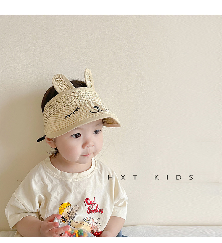 아기 빈 탑 밀짚 모자 귀여운 슈퍼 귀여운 토끼 큰 챙 자외선 차단제 모자 아기 차양 짠 모자스토어 가기