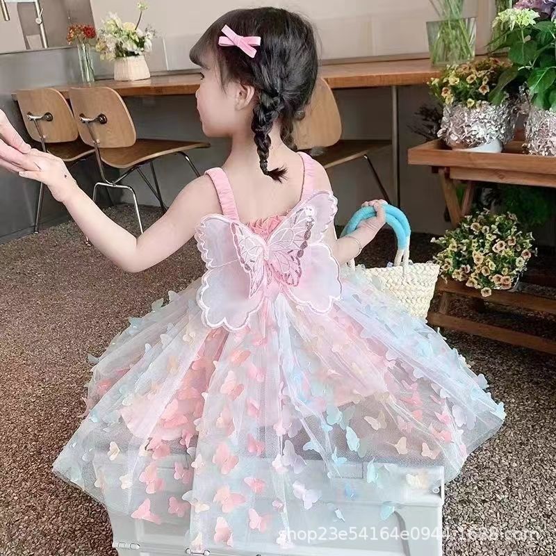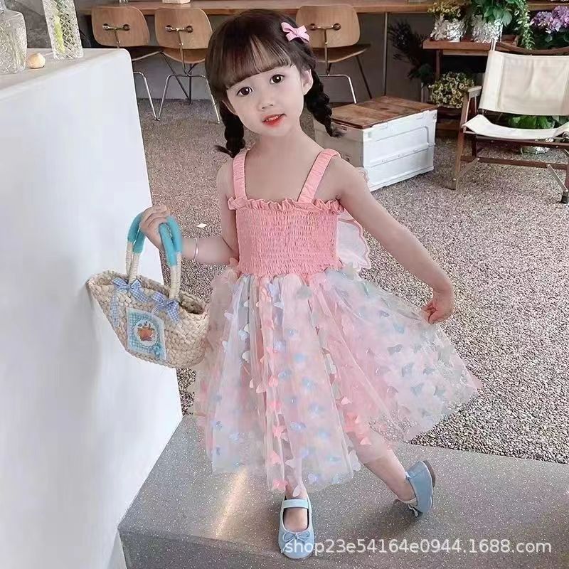 여아 공주 드레스 여름옷 2025 신상 아동 인터넷 인기 나비 리본 배색 레인보우 멜빵 드레스 여아 원피스스토어 가기