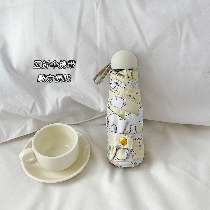 높은 찾고 귀여운 접이식 우산 태양 보호 자외선 비 이중 사용 태양 우산 휴대용 여성 검은 접착제 태양 우산스토어 가기