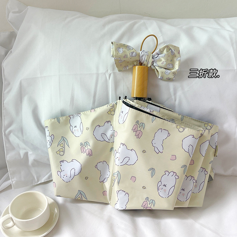 높은 찾고 귀여운 접이식 우산 태양 보호 자외선 비 이중 사용 태양 우산 휴대용 여성 검은 접착제 태양 우산