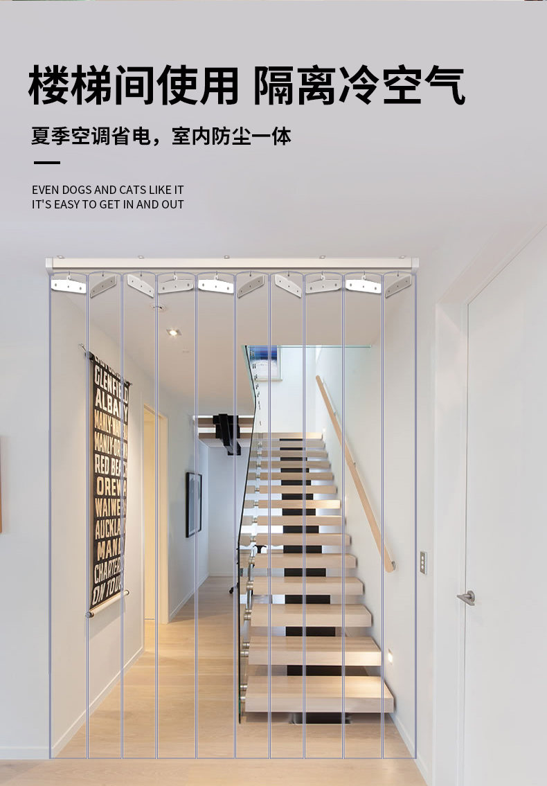 I9EK 계단 에어컨 쿨 도어 커튼 공기 단열 여름 투명 트랙 소프트 도어 커튼 pvc 환경 보호 슬라이딩
