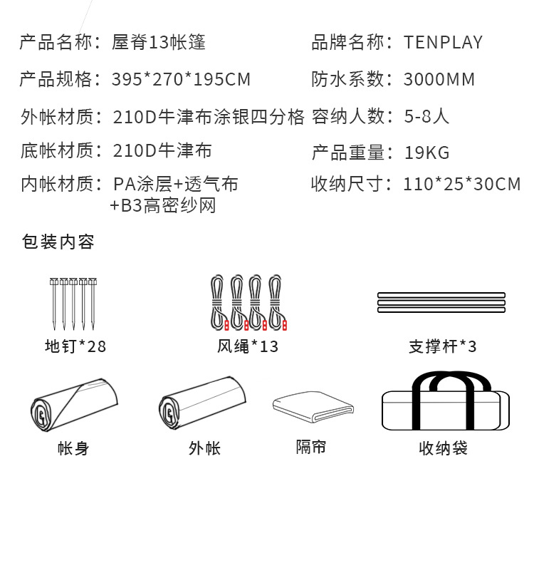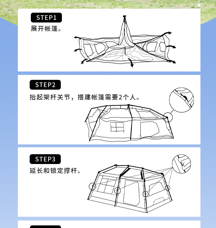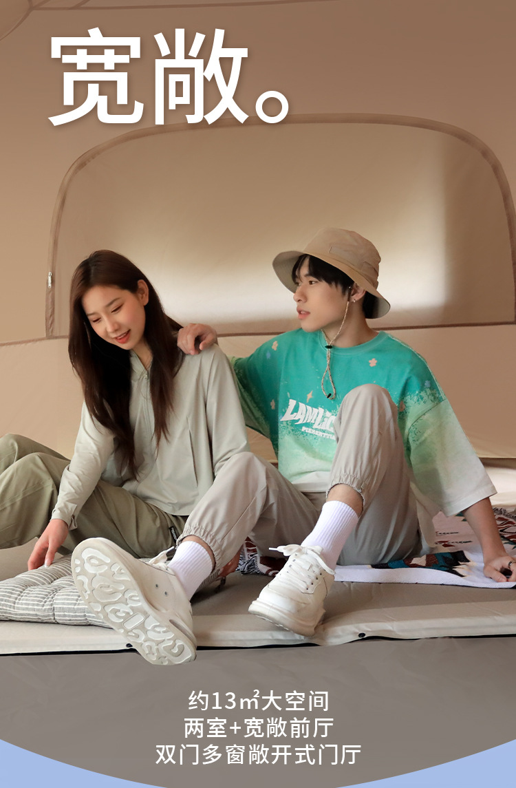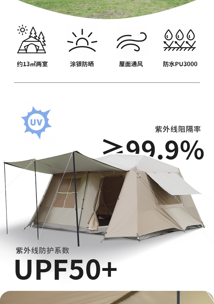 야외 캠핑 지붕 능선 13 자동 텐트 휴대용 빠른 개방 두꺼운 실버 코팅 태양 보호 두 방 원 홀 캠프 텐트