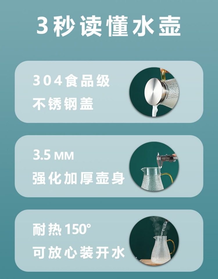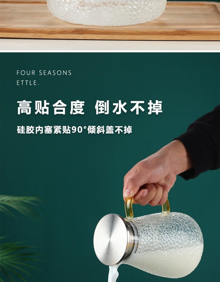 JW冷水壶玻璃轻奢凉水杯家用防摔锤纹耐高温茶壶大容量凉水壶套装스토어 가기