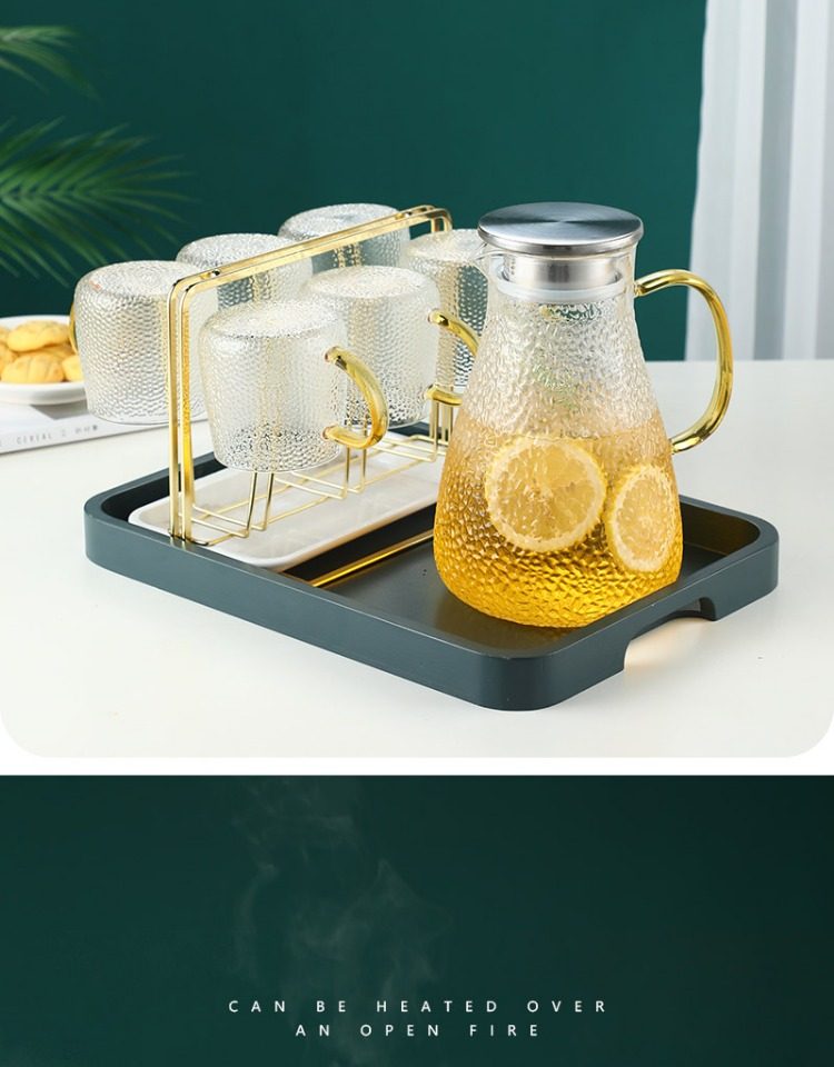 JW冷水壶玻璃轻奢凉水杯家用防摔锤纹耐高温茶壶大容量凉水壶套装