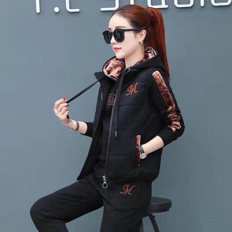 기모 두꺼운 운동복 여자의 가을과 겨울 2023 새로운 플러스 사이즈 캐주얼 쓰리 피스 겨울 패션 운동복