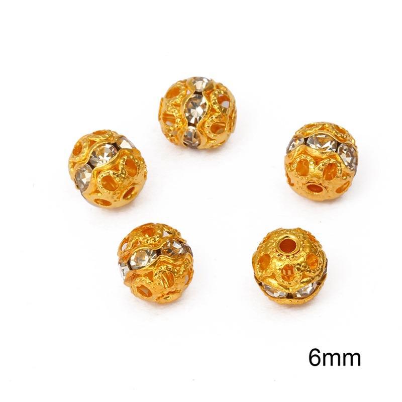 • 직경 6mm 구경 약 1mm 전기 도금 KC 골드 상감 화이트 다이아몬드 20 PC/가방
