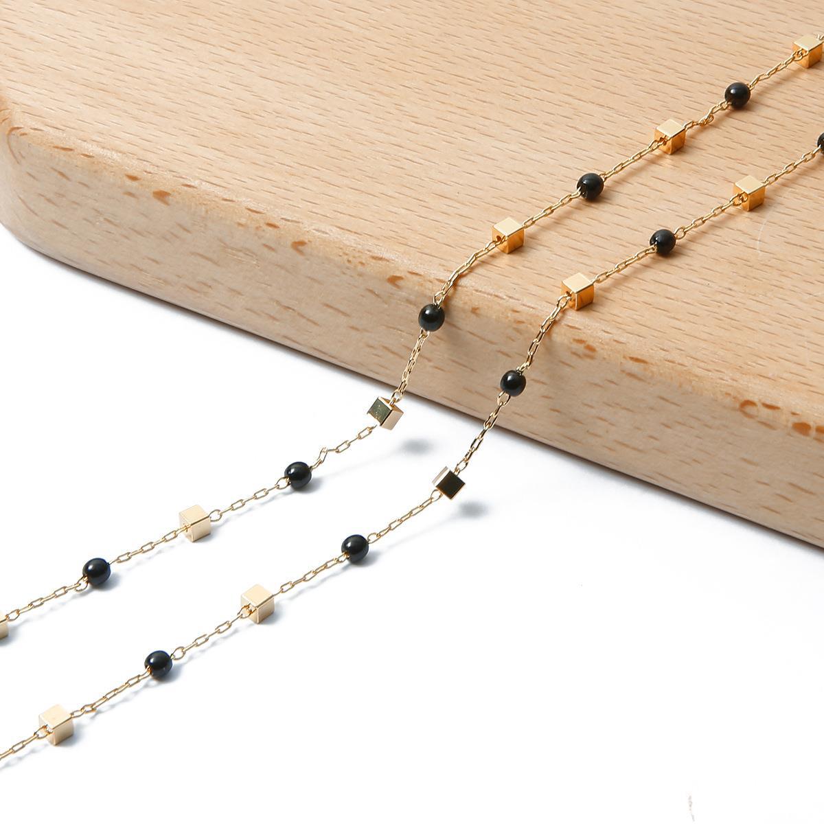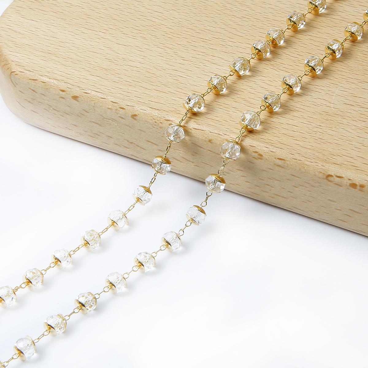색상 유지 18K 골드 크리스탈 플래시 지르코늄 컷 사각 튜브 클립 작은 금 구슬 체인 수제 느슨한 체인 DIY 보석