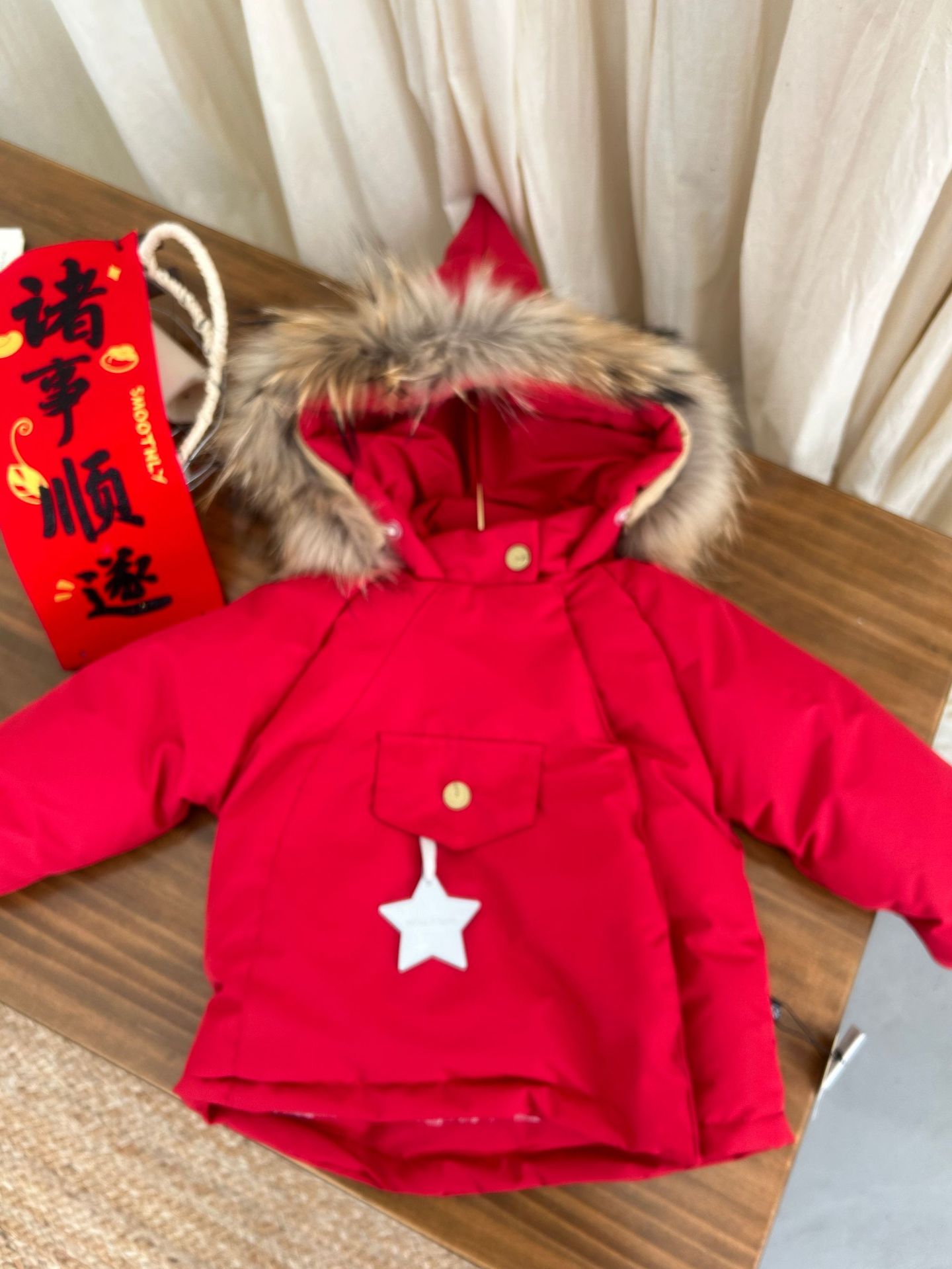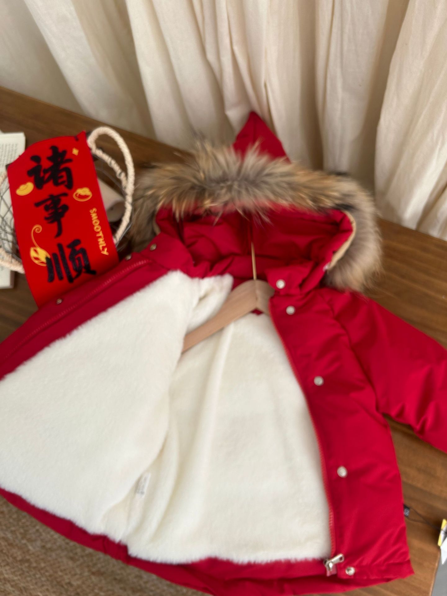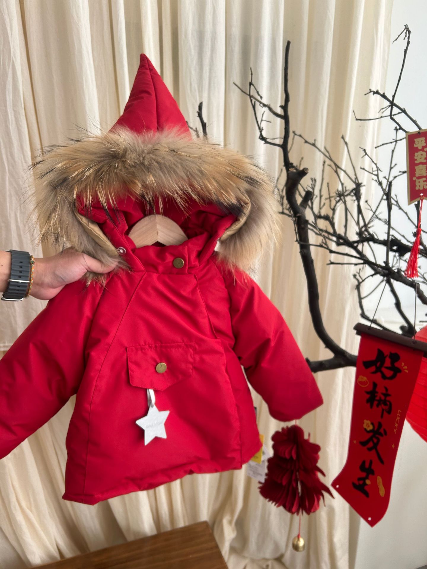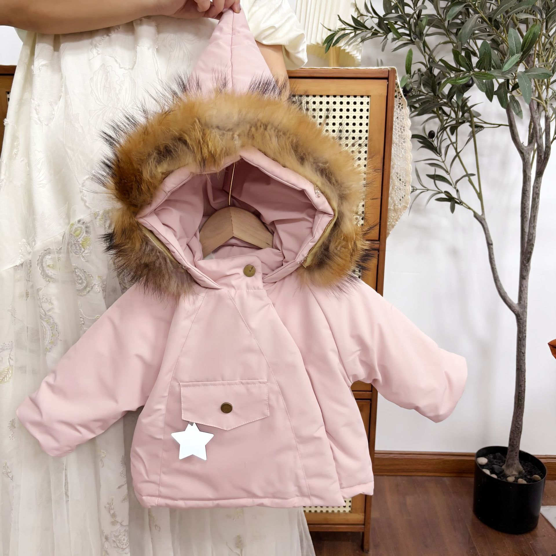 겨울 한국 아동복 큰 모피 칼라 귀여운 매직 뾰족한 매트 엘프 코트 모자 코튼 코트 아기 코트 따뜻한스토어 가기