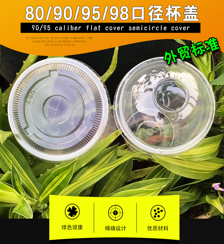 도매 98/95/90 구경 우유 차 컵 뚜껑 누출 방지 일회용 투명 평면 사출 반원형 뚜껑 플라스틱 우유 차 컵