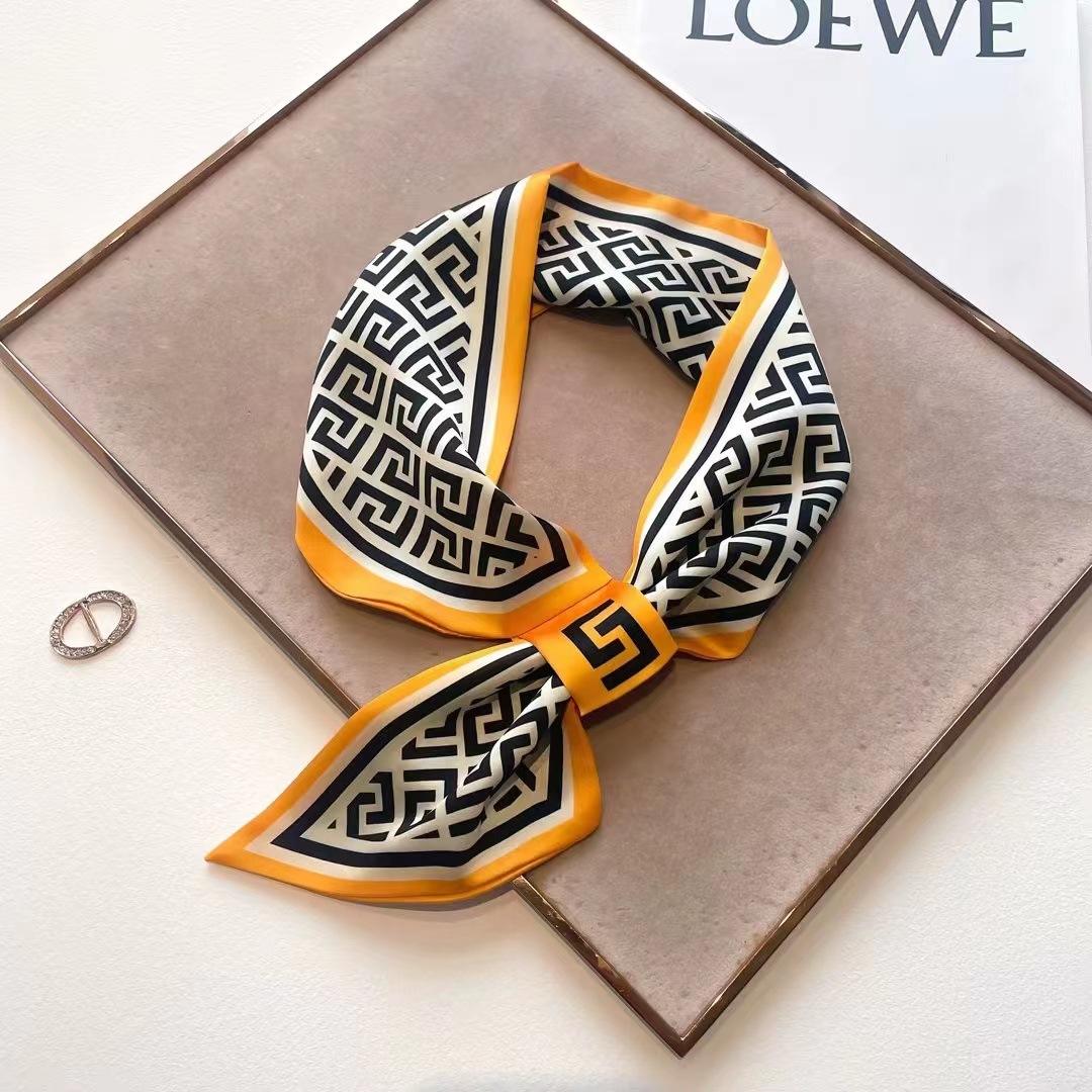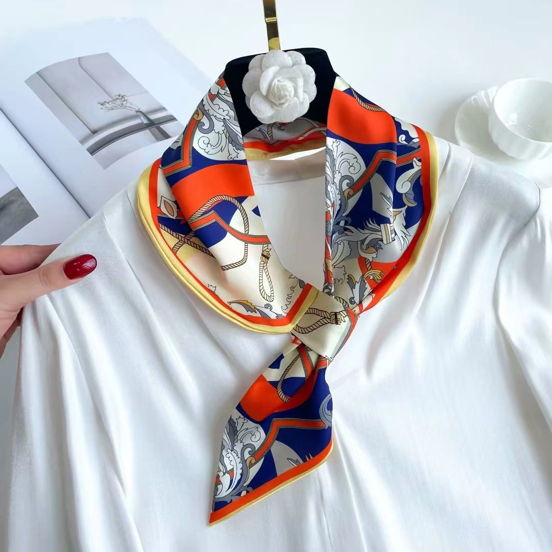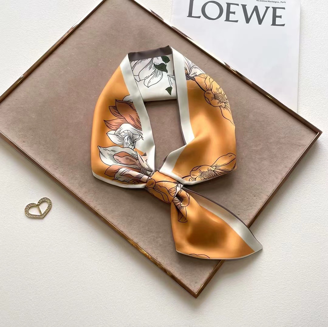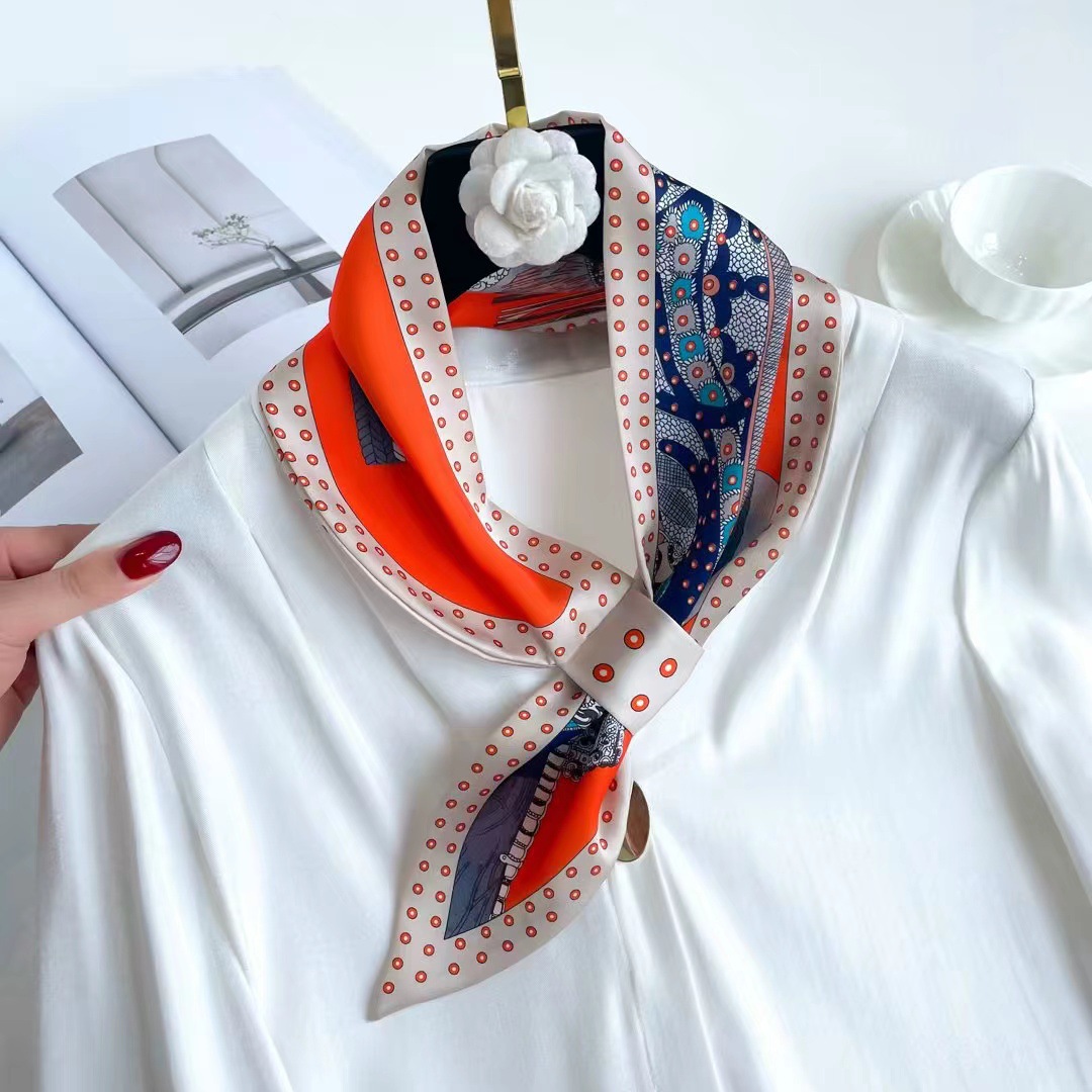 • 오렌지 캐슈 귀 작은 실크 스카프