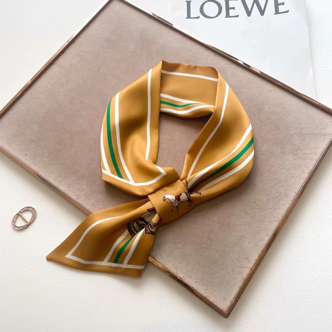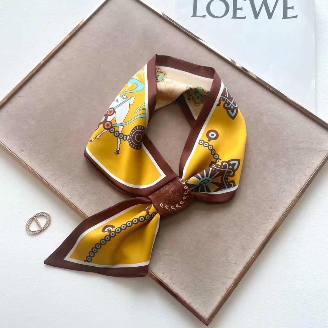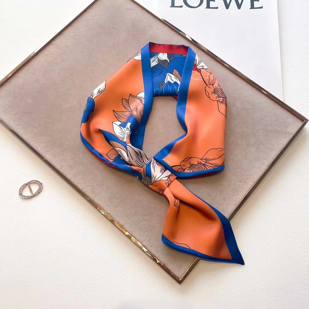 • 오렌지 캐슈 귀 작은 실크 스카프