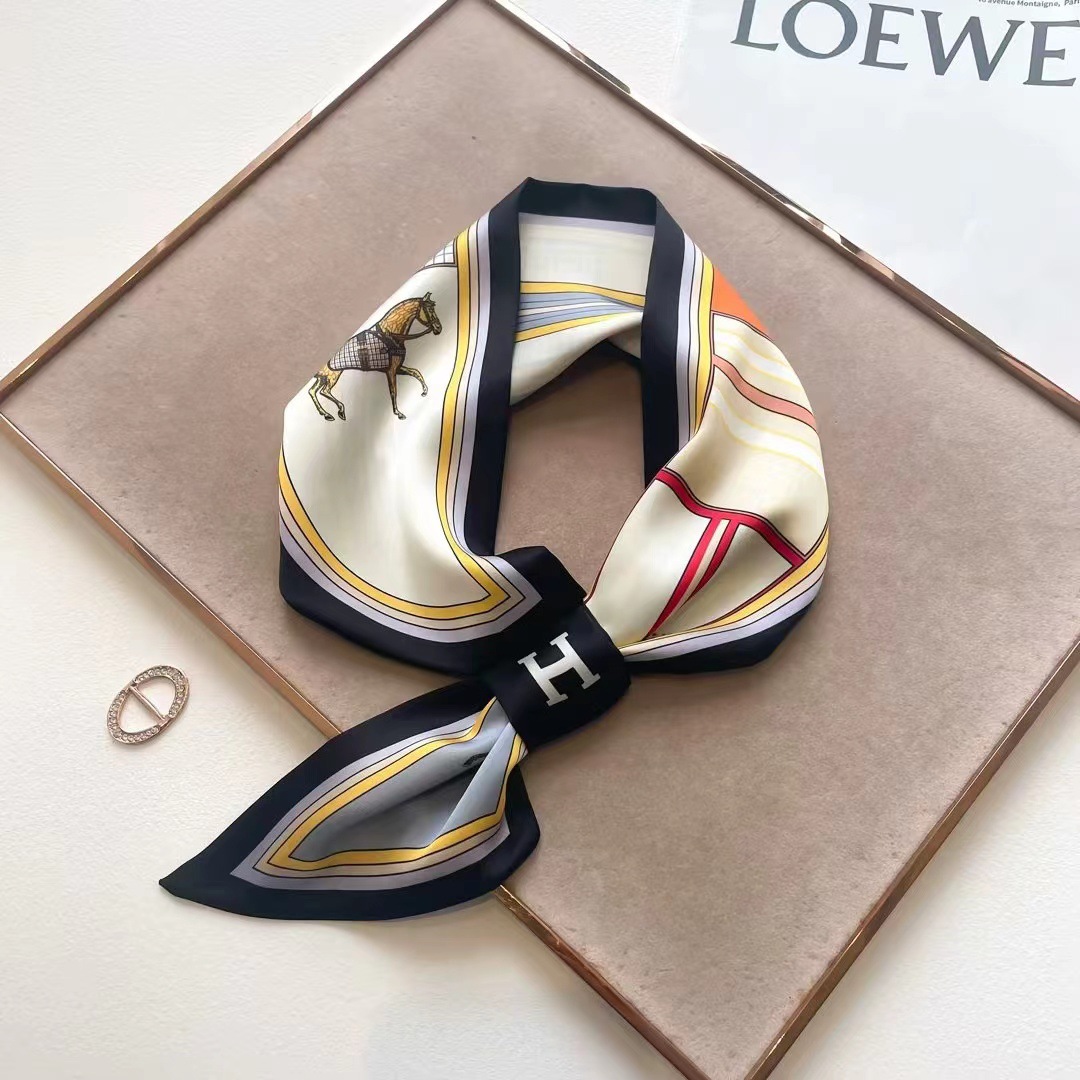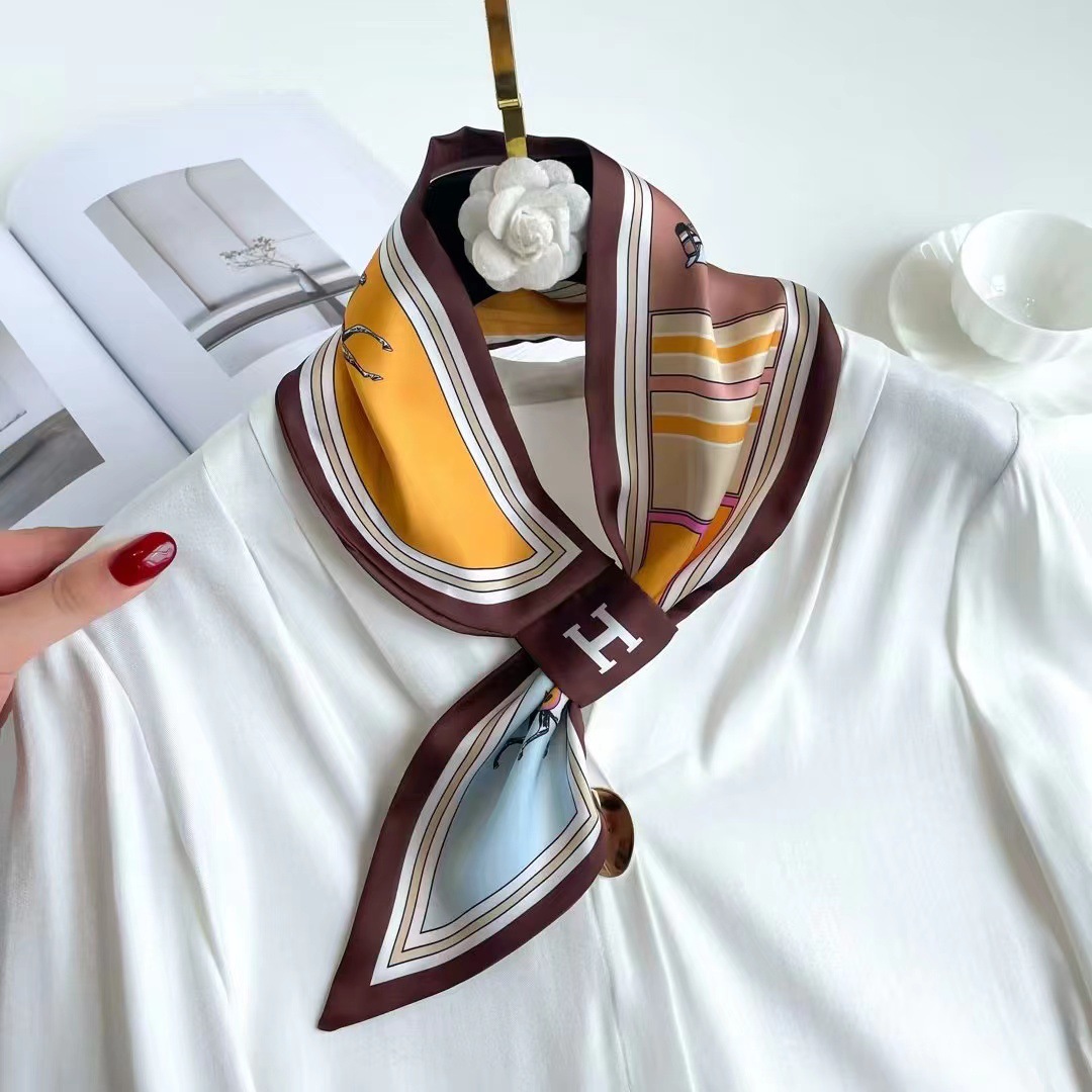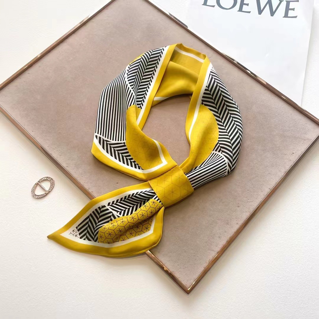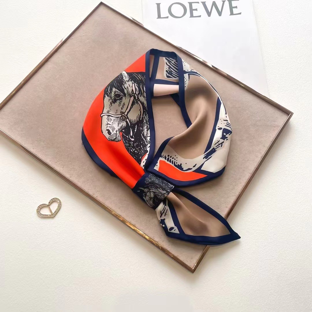 • 오렌지 캐슈 귀 작은 실크 스카프