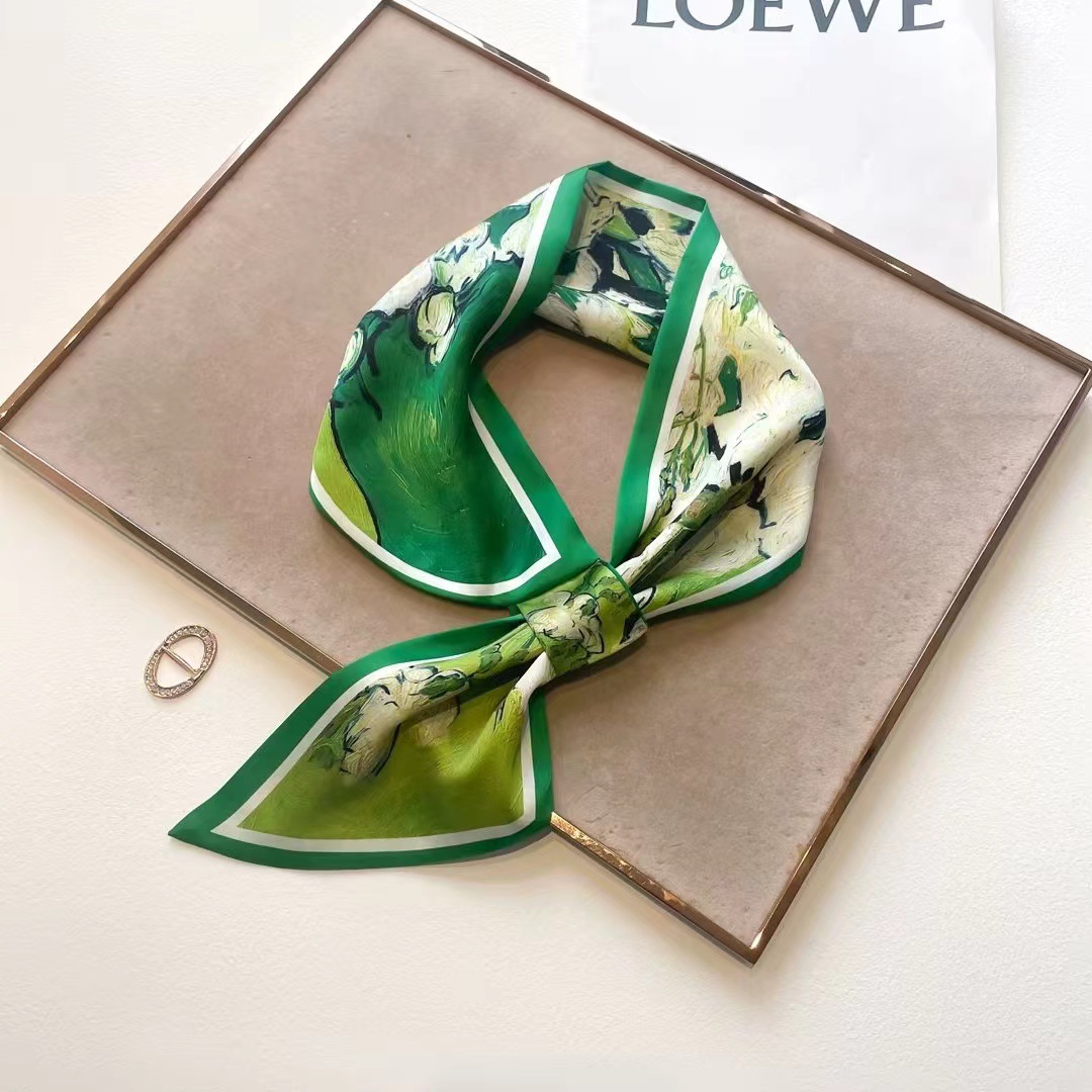 • 라이트 그린 꽃 귀 작은 실크 스카프