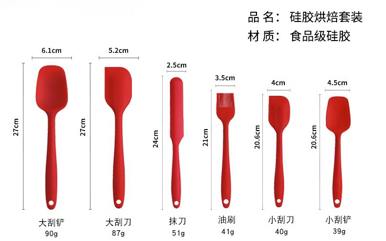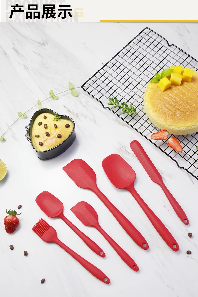 일체형 실리콘 베이킹 세트 고온 저항 실리콘 스크레이퍼 주걱 크림 오일 브러쉬 케이크 도구 6 개 세트