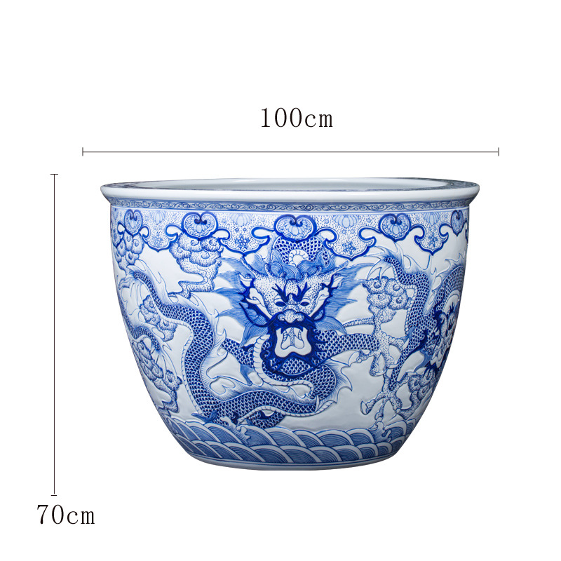 경덕진 도자기 청화 용조각 수작업 수채화 수련 및 연꽃 심기용 대형 수조, 물고기와 거북이 사육용 정원 수조