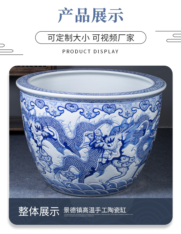 경덕진 도자기 청화 용조각 수작업 수채화 수련 및 연꽃 심기용 대형 수조, 물고기와 거북이 사육용 정원 수조스토어 가기