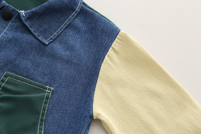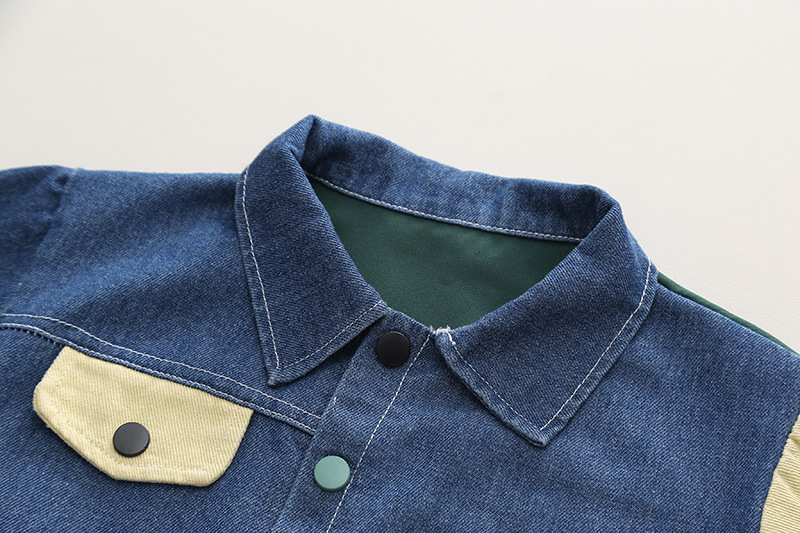 2023 도비 아동복 데님 컬러 매칭 포켓 잘생긴 옷깃 가을 소년 옷깃 2 종 아동 도매 한국