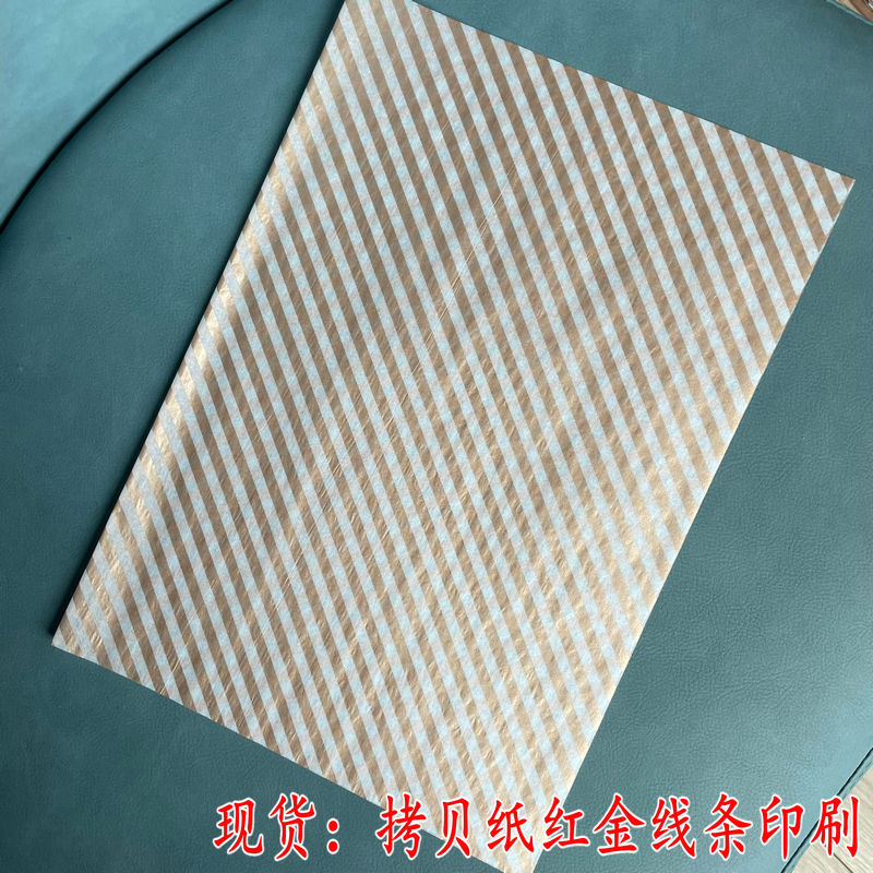 ,及良好的表面性质,细腻、平整、光滑、无泡泡沙、良好的适印性。彩色拷贝纸是拷贝纸的一种衍生产品,一般是由白色拷贝纸染上各种不同颜色制造而成,分为机内染色及机外染色两种。