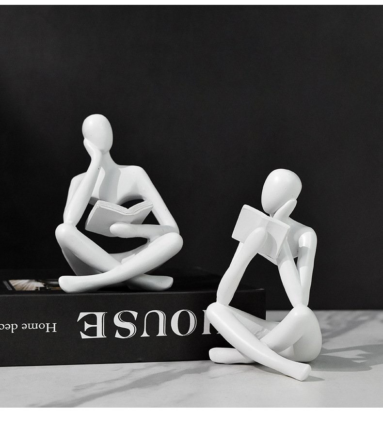 새로운 창의적인 추상 인물 독서 및 사색 조각상 거실 서재 와인 캐비닛 장식품 수공예품 레진 장식품