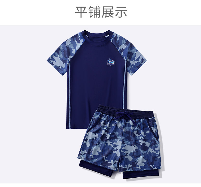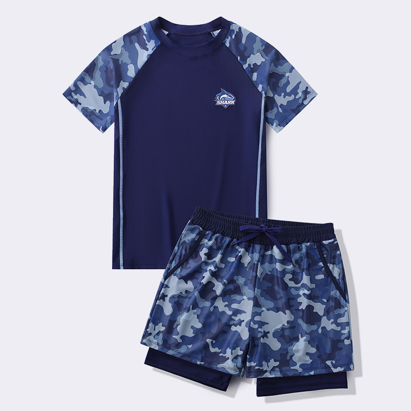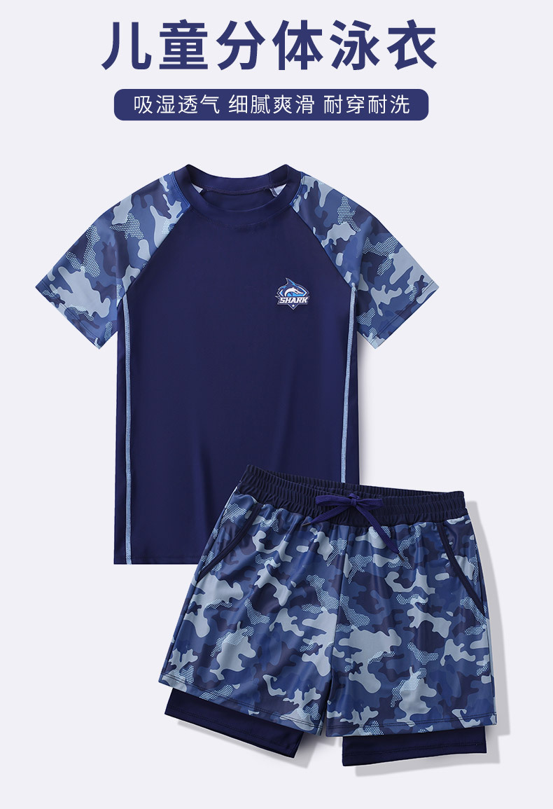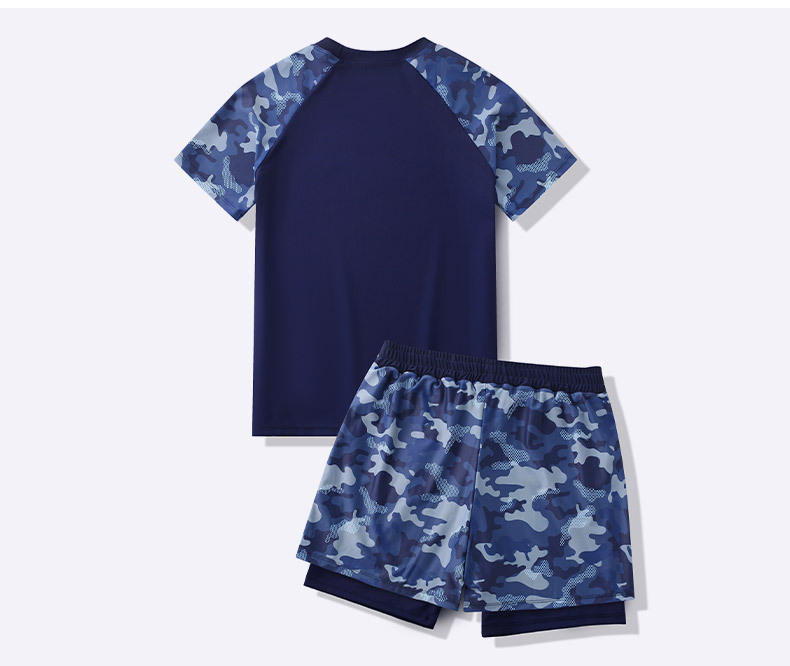 십대 당황 방지 더블 레이어 수영 트렁크 세트 큰 아이 분할 수영복 속건 소년 수영복 플러스 사이즈 스포츠 수영복