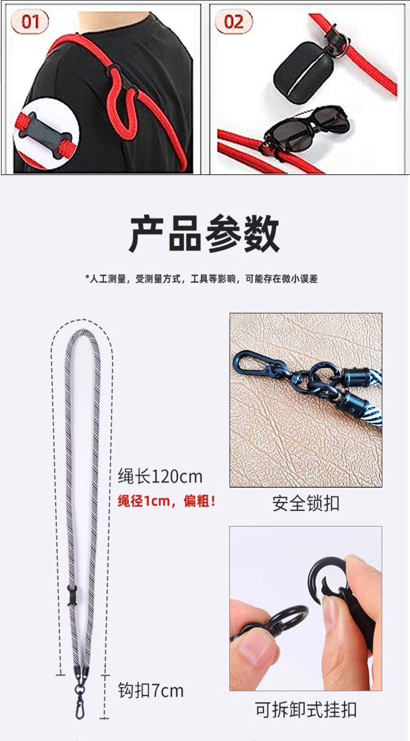 휴대 전화 케이스 교수형 로프 크로스 바디 카메라 손실 방지 교수형 스트랩 교수형 목 두꺼운 로프 스트랩 클립 강한 손목 키 체인
