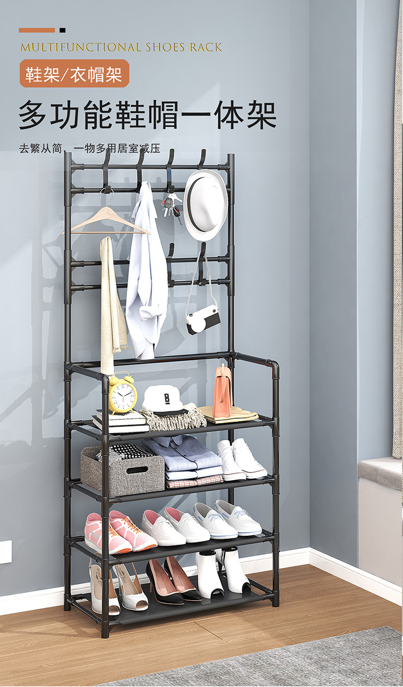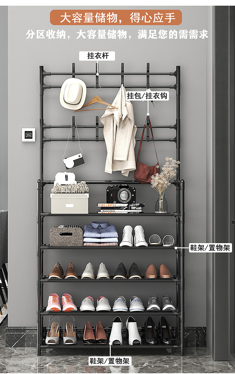 바닥 옷걸이 가정용 침실 코트 랙 도어 엔트리 행거 신발장 통합 가방 키 보관 랙