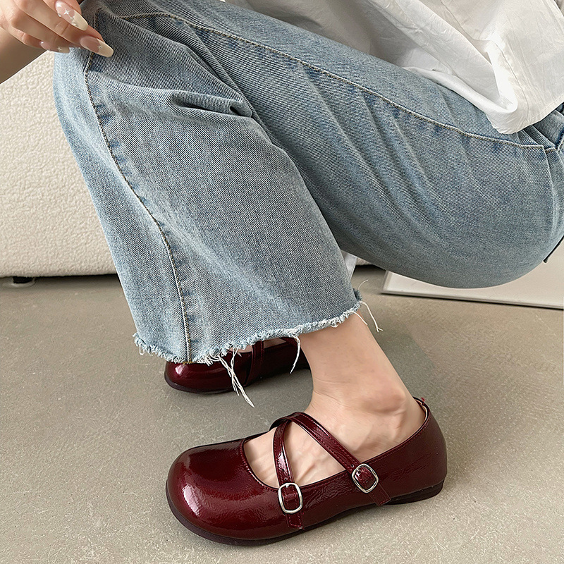 빈티지 프랑스 스타일 메리 제인 신발 여성용 2023 년 새로운 여름 폭발 얕은 입 요정 라운드 토 모든 매치 플랫 싱글 슈즈