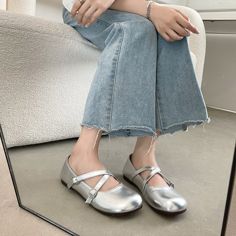 빈티지 프랑스 스타일 메리 제인 신발 여성용 2023 년 새로운 여름 폭발 얕은 입 요정 라운드 토 모든 매치 플랫 싱글 슈즈스토어 가기